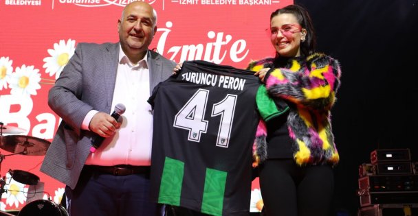 Sarıca ardından Turuncu Peron Grubunun solisti Ayşegül İnanç ve DJ Faruk Koç’a Kocaelispor forması hediye etti.