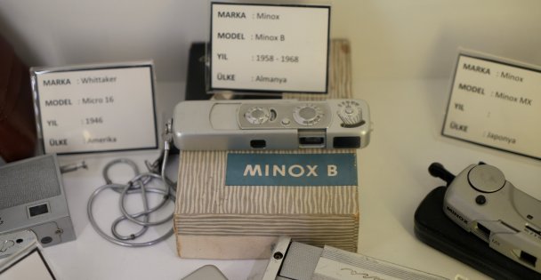 Saraç, camekanlı alan içerisinde casus makinelerin de sergilendiğini kaydederek, "James Bond'un 1969 yılındaki filminde kullandığı casus makinenin bir benzeri de müzede sergilenmektedir. Minyatür makineler bölümümüz var. Özellikle Soğuk Savaş döneminde casusların kullandığı makineler var. Aslında literatürde minyatür makine diye geçer ama halk tarafından casus makineler diye bilinir. 20'ye yakın minyatür casus makineler var. Hepsi gerçek, kişilerce kullanılmış makinelerdir" ifadelerini kullandı.