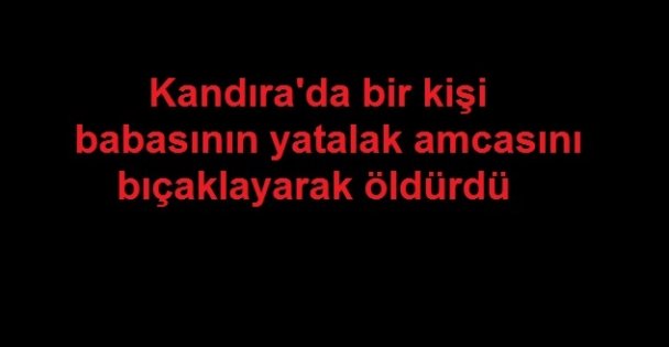 Alınan bilgiye göre, Sinanlı Bilalli Mahallesi'nde Cavit Ö. (31), aynı evde yaşadığı babasının amcası yatalak hasta Salim Ö'yü (87) henüz bilinmeyen bir nedenle bıçakladı.
