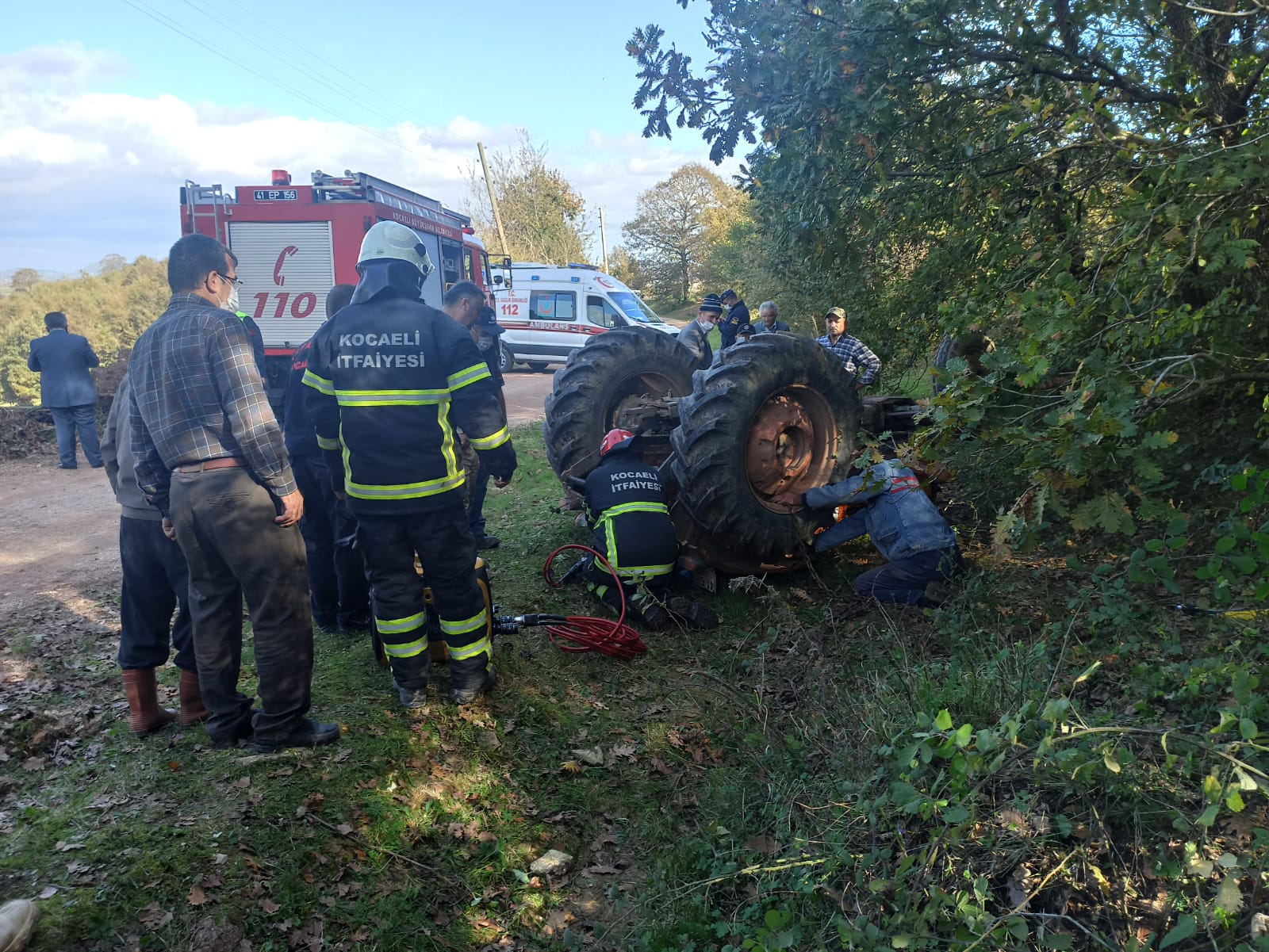 Yusufça Mahallesi'nde Necmi Demirel (65) idaresindeki 41EH 854 plakalı traktör, sürücünün direksiyon hakimiyetini kaybetmesi sonucu boş araziye devrildi.