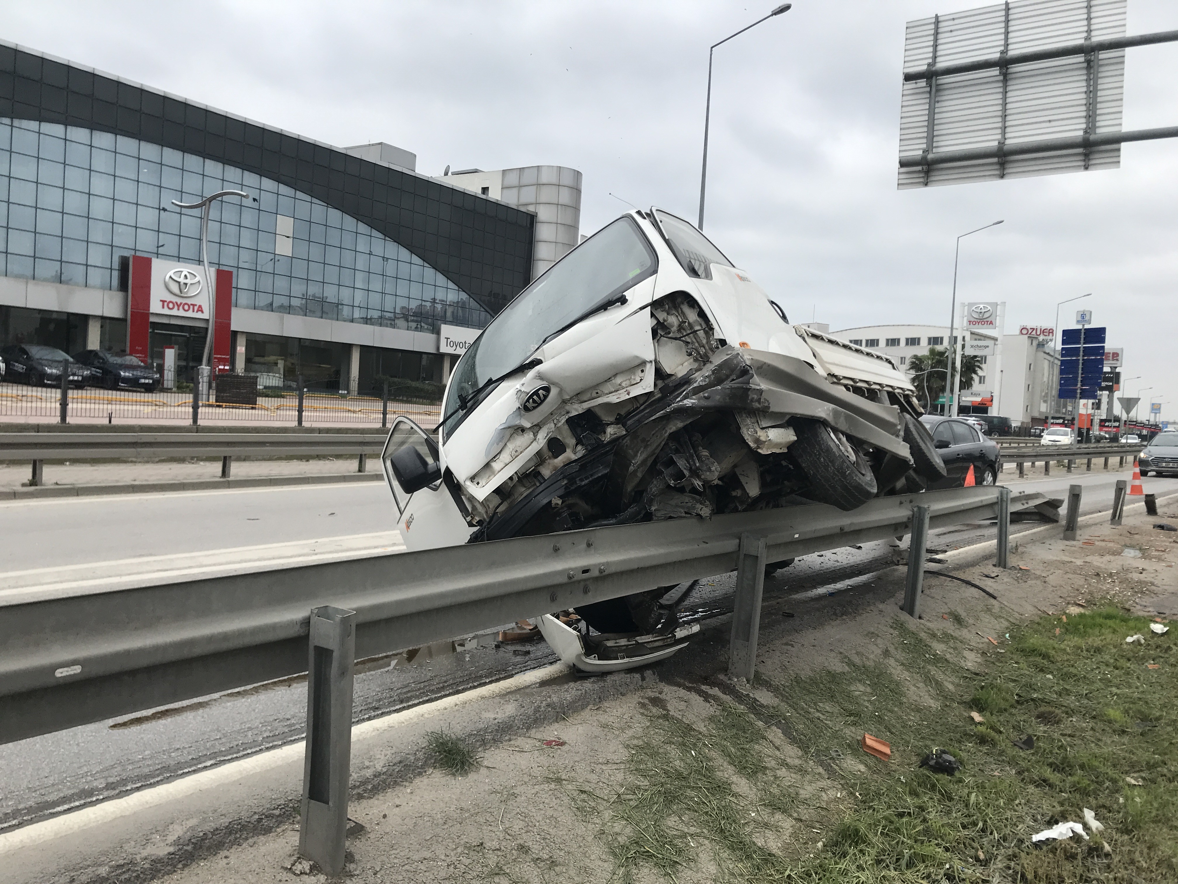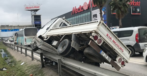 İzmit ilçesinde sürücüsünün hakimiyeti kaybettiği kamyonet, bariyerlere çarparak durabildi. Kazada kamyonette bulunan yolcu yaralandı.