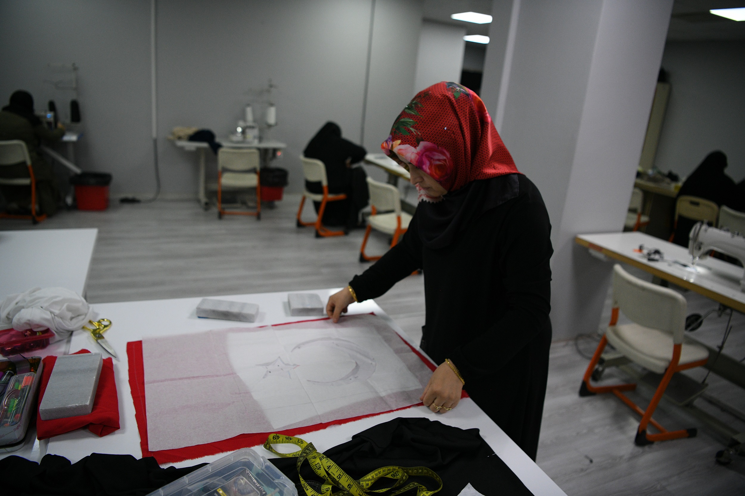 Kurs eğitmeni Emine Selma Çiftçi, dikiş kursunda gerçekleştirdikleri 29 Ekim Cumhuriyet Bayramı’na özel çalışma için şunları dile getirdi; “Önceki dönemden ve yeni kayıt yaptıranlar olmak üzere kursiyerlerimizle eğitimlere başladık, çalışıyoruz. Herkes kişisel olarak çalışmalarını gerçekleştiriyor. 29 Ekim Cumhuriyet Bayramı’mız yaklaştığından ötürü 29 Ekim etkinliği olması için bayrağımızı da kendimiz dikelim istedik. Bunla ilgili de bir çalışma başlattık ve bayraklarımızı da tamamladık. Herkes çok memnun oldu ve manevi olarak da çok özel bir çalışma yaptık. Bütün sınıfı Ay-Yıldızlı bayrağımızla dolu görünce çok duygulandık.”