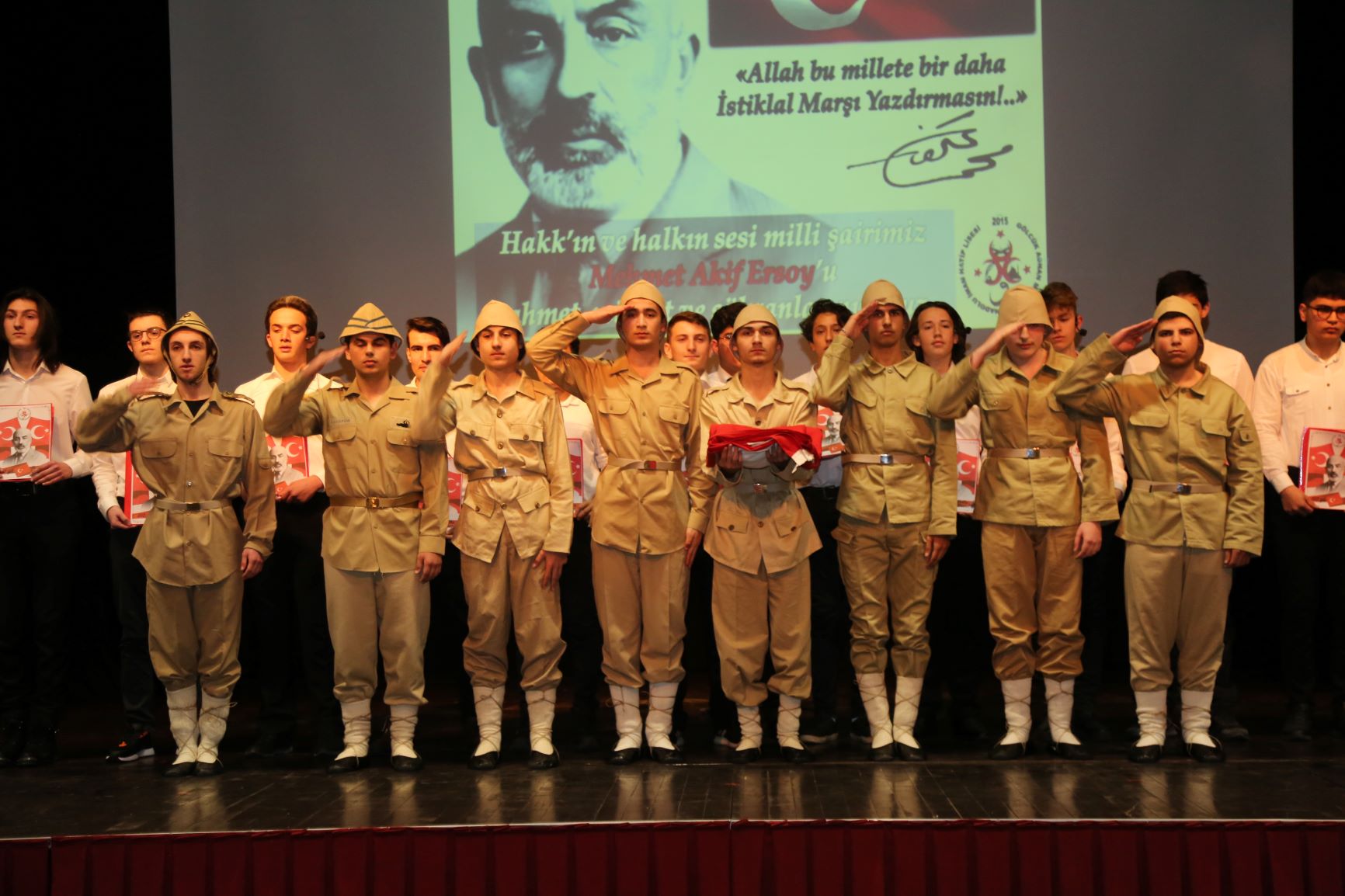 İstiklal Marşı şairi Mehmet Akif Ersoy, İstiklal Marşı'nın kabulünün 102. yıl dönümünde Gölcük Kazıklı Kervansarayı Kültür Yapısı’nda öğrenciler tarafından sahnelenen orotoryo ile anıldı. Gölcük Kaymakamlığı, Gölcük Belediyesi ve İlçe Milli Eğitim Müdürlüğü işbirliğinde, Gölcük Adnan Menderes Anadolu İmam Hatip Lisesi öğretmen ve öğrencileri tarafından hazırlanan programda, salonu dolduran izleyiciler duygu dolu anlar yaşadı.