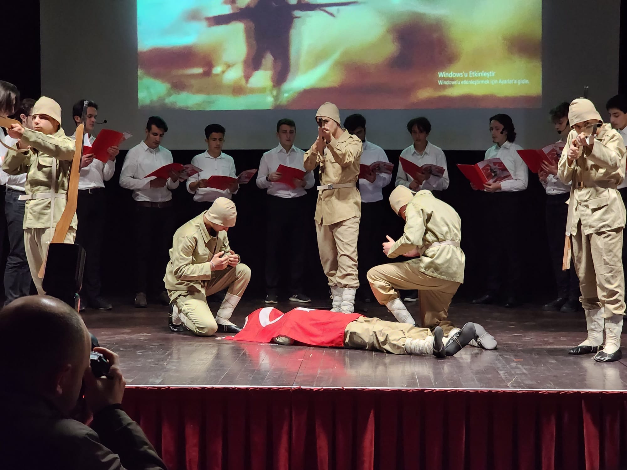 Saygı duruşu ve İstiklal Marşı’nın okunması ile başlayan törende; günün anlam ve önemini belirten konuşmaların ardından Mehmet Akif Ersoy tarafından İstiklal Marşı’nın yazılma sürecini anlatan video gösterimi ile devam etti. Törende Mehmet Akif’in hayatını ve İstiklal Marşı’nın yazılması sırasında yaşananları canlandıran öğrencilerin performansı ise izleyenleri duygulandırdı. Oratoryonun sonunda sahneye Türk devletlerinin bayrakları ile çıkan öğrenciler salondan büyük alkış aldı.
