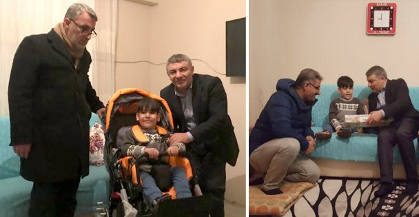 Doğuştan engelli olan ve yürüyemeyen minik Yusuf’a tekerlekli sandalye ve çeşitli hediyeler veren Başkan Şayir, minik Yusuf’u ve ailesini sevindirirken, Ali Yusuf'un mutluluğu görülmeye değerdi. Ocak ailesi Başkan Şayir’in ziyaretinden dolayı büyük bir mutluluk yaşarken, minik çocuklarına gösterdiği ilgi alaka ve getirdiği hediyeler içinde çok teşekkür etiler.