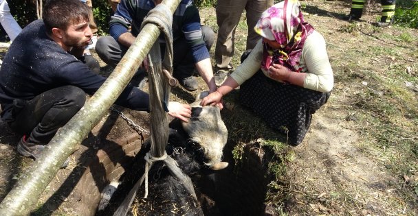 Kocaeli’nin Gölcük ilçesinde ahırda çıkan yangından kaçan dana tandır kuyusuna düştü. İtfaiye ekipleri ve köylülerin yarımıyla büyükbaş hayvan uzun uğraşlar neticesinde kepçe yardımıyla kurtarıldı.