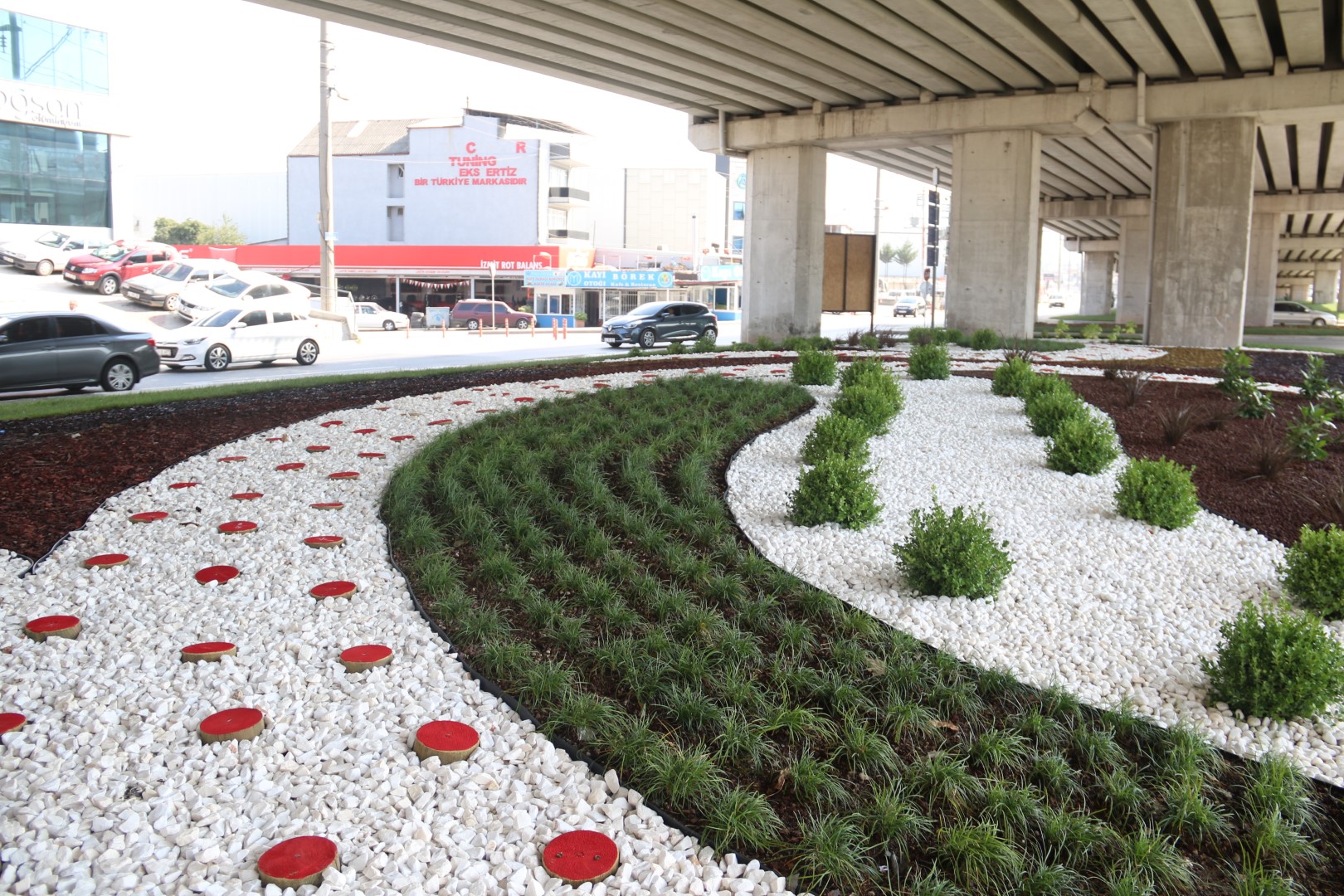 Çevre düzenlemesinin tamamlandığı köprülü kavşaktaki çalışmalar 6 bin 22 metrekare alanda gerçekleştirildi. Çalışma dahilinde kavşağa canlılık katacak farklı renklerde yonga ve taş kullanıldı. Yapılan çalışma ile kavşak ve çevresi estetik açıdan zenginleşti.