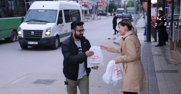 İzmit Belediyesi, sabahın erken saatlerinde işe gitmek için duraklarda servis bekleyen vatandaşlara poğaça, meyve suyu ve sıcak çorba ikram etti.