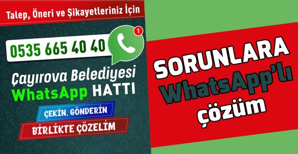 Çayırova Belediye Başkanı Bünyamin Çiftçi’nin talimatı ile kurulan Whatsapp çözüm hattı ile vatandaşlardan gelen sorun ve şikayetler çözüme kavuşuyor. Bazı birimlerin ayrı ayrı kullandığı Whatsapp şikayet hattını kapatarak çözüm hattını devreye alan Çayırova Belediyesi, sosyal medyadan gelen şikayetlere çözüm üretiyor.” Çek , yaz, gönder çözelim, Çayırova’yı birlikte yönetelim” sloganı ile hizmet veren 0535 665 40 40 numaralı Whatsapp çözüm hattına gelen talep, şikâyet ve önerilerin görselleri anında ilgili birim müdürlüklerine aktarılarak şikayet ve sorunların çözümü için harekete geçiliyor. Birim müdürlüklerinin şikayet, sorun ve taleple ilgili verdiği bilgiler çözüm hattından vatandaşlara iletilerek geri dönüş yapılıyor. Günümüzün en hızlı sosyal medya iletişim aracı haline gelen Whatsapp çözüm hattı ile talep ve şikâyetlerinin birçoğu belediye gelmelerine gerek kalmadan çözülen vatandaşlar uygulamadan oldukça memnun.