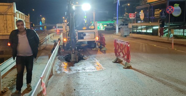 - Kanalizasyondan kaynaklanan su birikintisi asfaltı çökertti