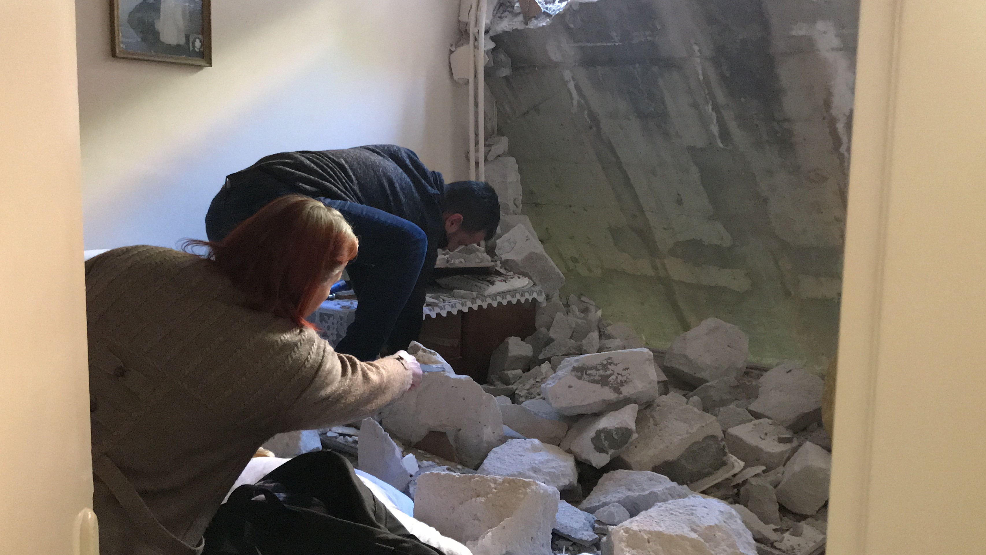 Hasarın boyutu gündüz daha net ortaya çıktı. Çöken duvarın bazı dairelerin içine girdiği görüntülendi.