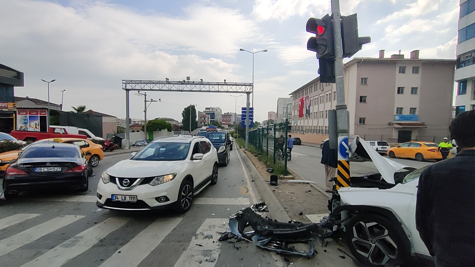 Gebze ilçesinde kırmızı ışıkta geçen otomobil, 2 araca ve bir yayaya çarptı. Çarpmanın şiddetiyle araçlar hurdaya dönerken yaya yaralanarak hastaneye kaldırıldı.