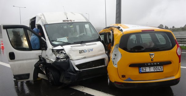 (OSB) yol ayrımına giren A.Y. idaresindeki 34 LIU 113 plakalı işçi servis minibüsü ile H.E. hakimiyetindeki 62 T 0045 plakalı ticari taksi çarpıştı. Kazanın şiddetiyle