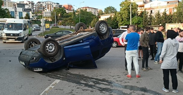 Gebze ilçesinde hafif ticari aracın çarptığı otomobil takla attı. Takla atan otomobilin sürücüsü kazayı hafif sıyrıklarla atlattı.