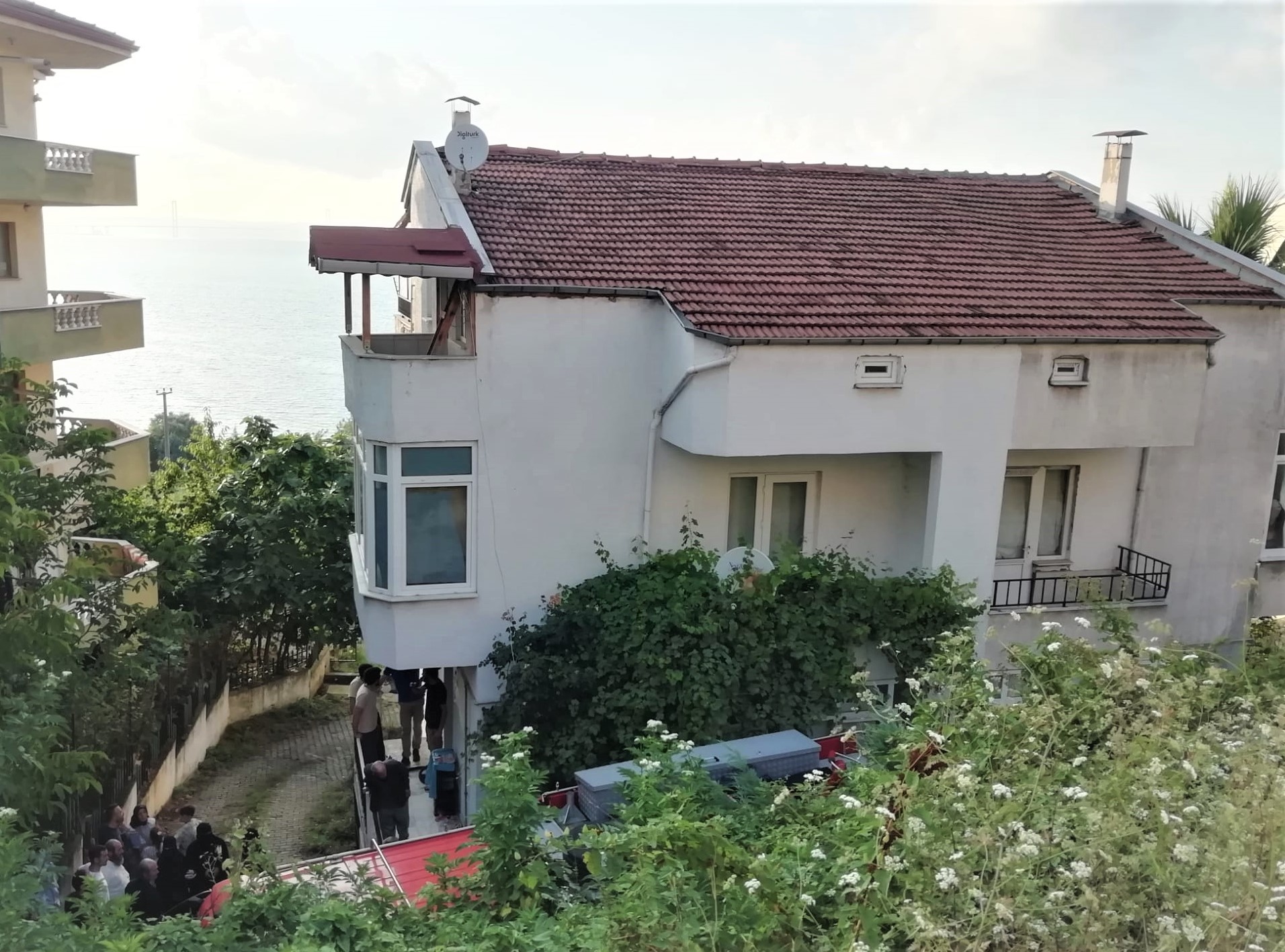Orta katta mahsur kalan 6 kişi, yan taraftaki villanın çatı katından tahliye edildi.