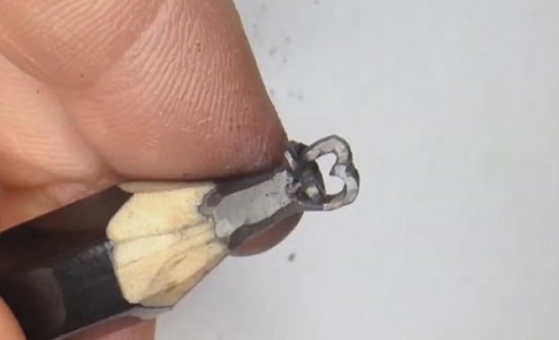 İnternetten videolar izleyerek kalem uçlarını oymayı öğrenen otomotiv işçisi, ağaç kaplamalı kalemleri neşter ve iğneyle işleyerek figürler ortaya çıkarıyor.