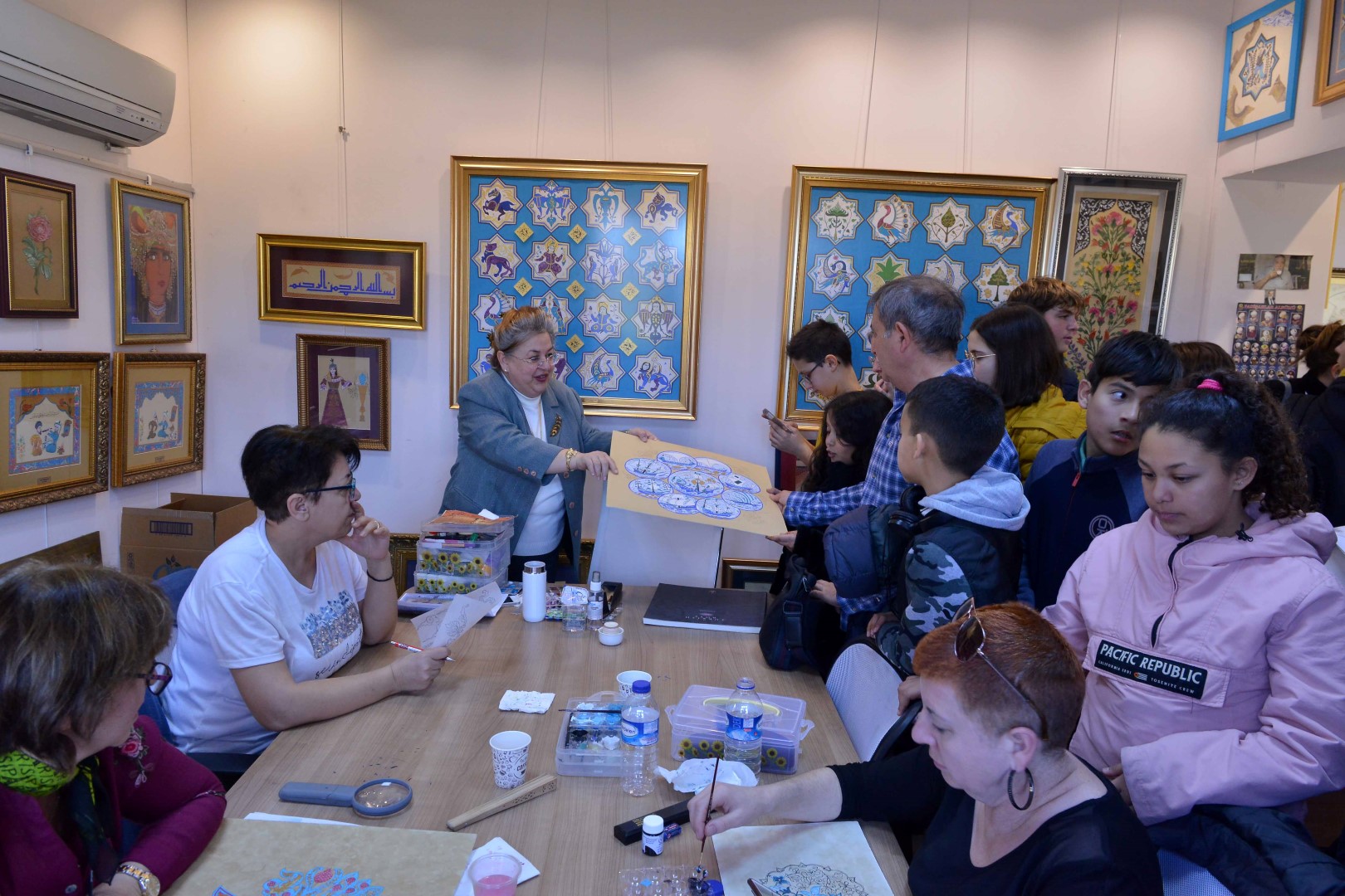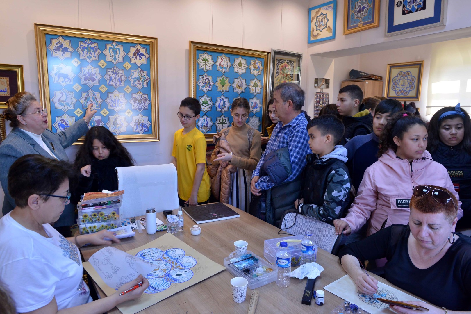 Geleneksel Türk Süsleme Sanatları Eğitim Merkezi’nde bulunan eserleri inceleyen erasmus öğrencilerine, eğitmen Deniz Gülsüm Sarıbay tarafından minyatür sanatının nasıl yapıldığına dair bir atölye çalışması yapıldı. Bu sanatı deneyimleme fırsatı bulan Polonya, İspanya, Fransa ve Romanya’dan 12-14 yaş aralığından 25 öğrenci, öğretmenleriyle birlikte ve Türkan Dereli İlkokulu Müdür Yardımcısı Yasemin Suçeken mihmandarlığında bir dizi ziyaret gerçekleştirdi.