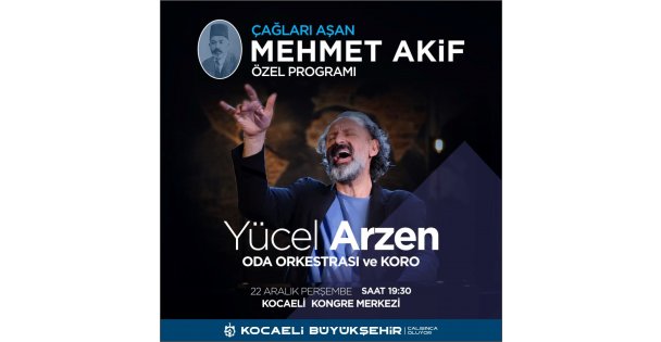 Kocaeli Büyükşehir Belediyesi, İstiklal Marşı Şairimiz Mehmet Akif Ersoy’u, doğduğu ve hayata veda ettiği aralık ayında düzenleyeceği anlamlı bir etkinlikle anacak. “Çağları Aşan Mehmet Akif” konulu anma programı 22 Aralık Perşembe akşamı Kocaeli Kongre Merkezi’nde gerçekleştirilecek. Tüm vatandaşların katılabileceği program 19.30’da başlayacak. Etkinlikte Türkiye Yüzyılı eserinin bestecisi müzisyen Yücel Arzen, Mehmet Akif Ersoy’un şiirlerinden bestelenen eserleri koro eşliğinde seslendirecek. Sanatçı, bestelediği “Türk Marşı” adlı eserini de programda ilk kez çalacak.