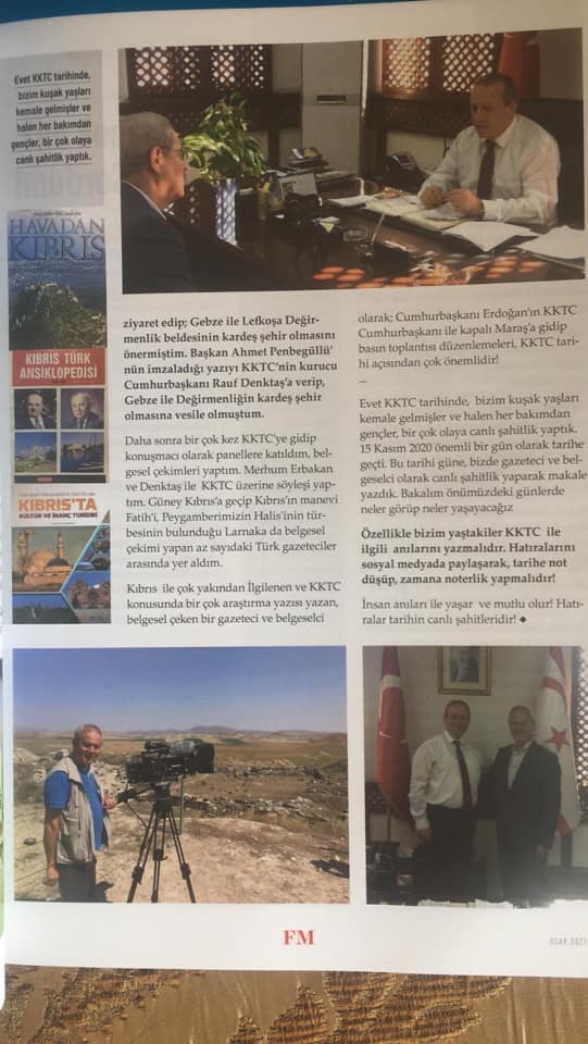 Daha sonra birçok kez KKTC`ye gidip konuşmacı olarak panellere katıldım.Belgesel çekimleri yaptım. Merhum Erbakan ve Denktaş ile KKTC üzerine söyleşi yaptım Güney Kıbrıs’a geçip Kıbrıs’ın manevi Fatih’i peygamberimizin Halis’inin türbesinin bulunduğu Larnaka da belgesel çekimi yapan az sayıdaki Türk gazeteciler arasında yer aldım