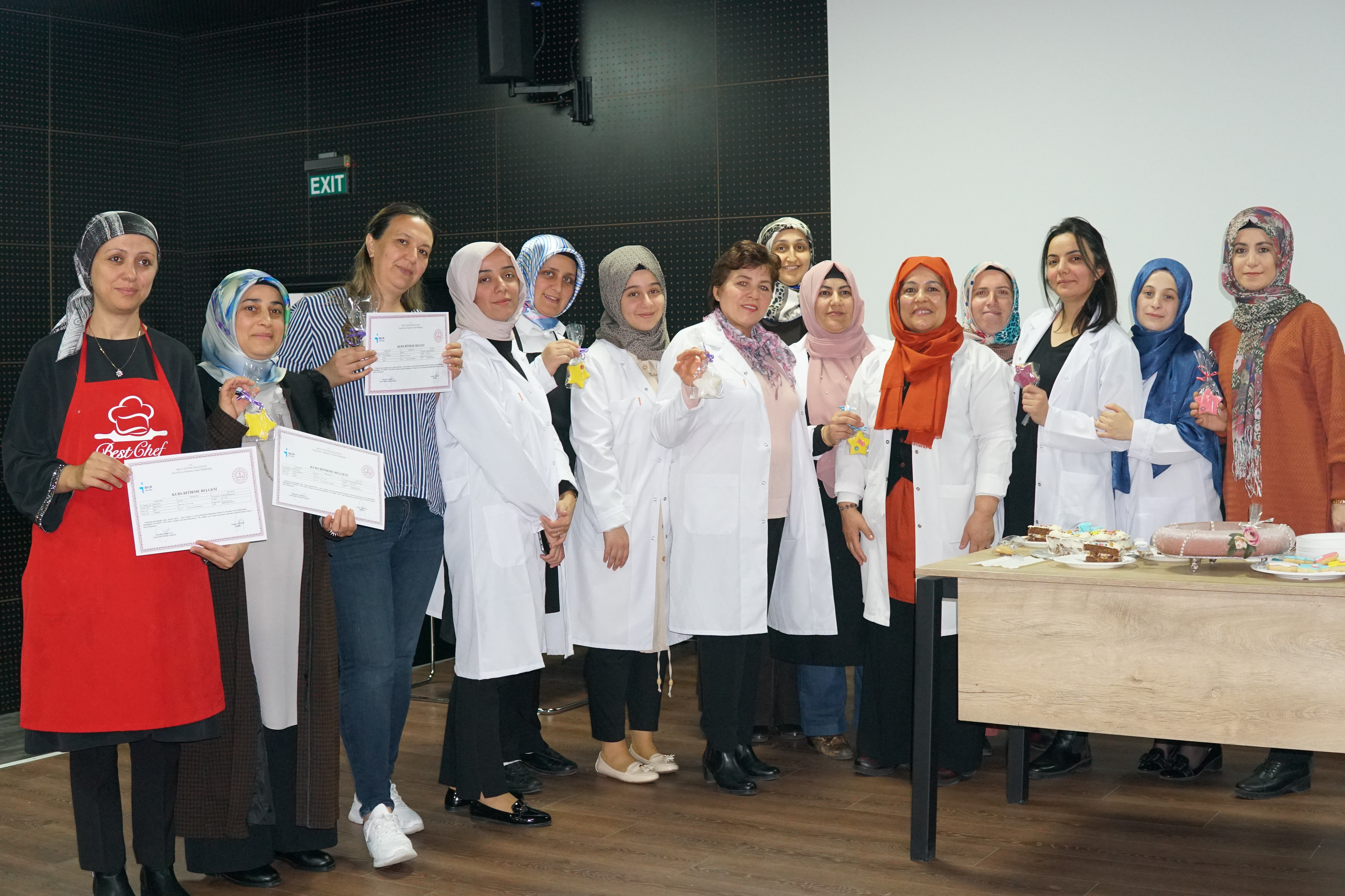 Çayırova Belediyesi’nin yetişkinlere yönelik meslek ve sanat edinme kursları devam ediyor. Prof. Dr. Necmettin Erbakan Kültür Merkezi’nde çeşitli branşlarda eğitime tabi tutulan kursiyerler eğitim sonunda sertifika alarak meslek sahibi oluyorlar. Devam eden meslek ve sanat edindirme kursları kapmasında Prof. Dr. Necmettin Erbakan Kültür Merkezi’nde aşçılık eğitimi alan kursiyerler düzenlenen törenle sertifikalarını aldılar. Belediye ile halk eğitim merkezinin ortaklaşa sürdürdüğü aşçılık kursunun ilk dönemini 6 ayda bitiren 20 kursiyer sertifikalarını alarak meslek sahibi oldular. 15 kişinin eğitimlerinin devam ettiği kursu veren Halk Eğim Merkezinin tecrübeli eğitimcisi Şermin Çiftçi, kursiyerler için düzenlenen belge töreninde pastanın serüveni ile ilgili slayt eşliğinde sunum yaptı. Kursiyerlerin pasta hazırlayarak hünerlerini sergilediği programa katılan Çayırova Belediye Başkan Yardımcısı Kenan Tuzcu ile Çayırova Halk Eğitim Merkezi Müdürü Selami Yılmaz, aşçılık kursunu başarı ile tamamlayan kursiyerlere belgelerini verdiler.