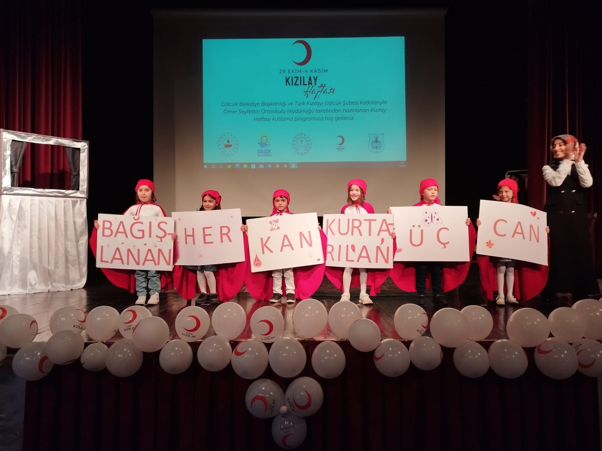Gölcük Belediyesi, Gölcük Kaymakamlığı ve Kızılay Gölcük Şubesi iş birliğinde, Kızılay Haftası çerçevesinde Kazıklı Kervansarayı Kültür Yapısı’nda etkinlik düzenlendi. Etkinlikte Ömer Seyfettin Ortaokulu öğrencilerinin hazırlayıp sundukları tiyatro oyunu, salonu dolduran izleyicilerden yoğun alkış aldı. İlçedeki ilkokul ve ortaokullarda düzenlenen şiir ve resim yarışmalarında dereceye giren öğrenciler ise ödüllendirildi.