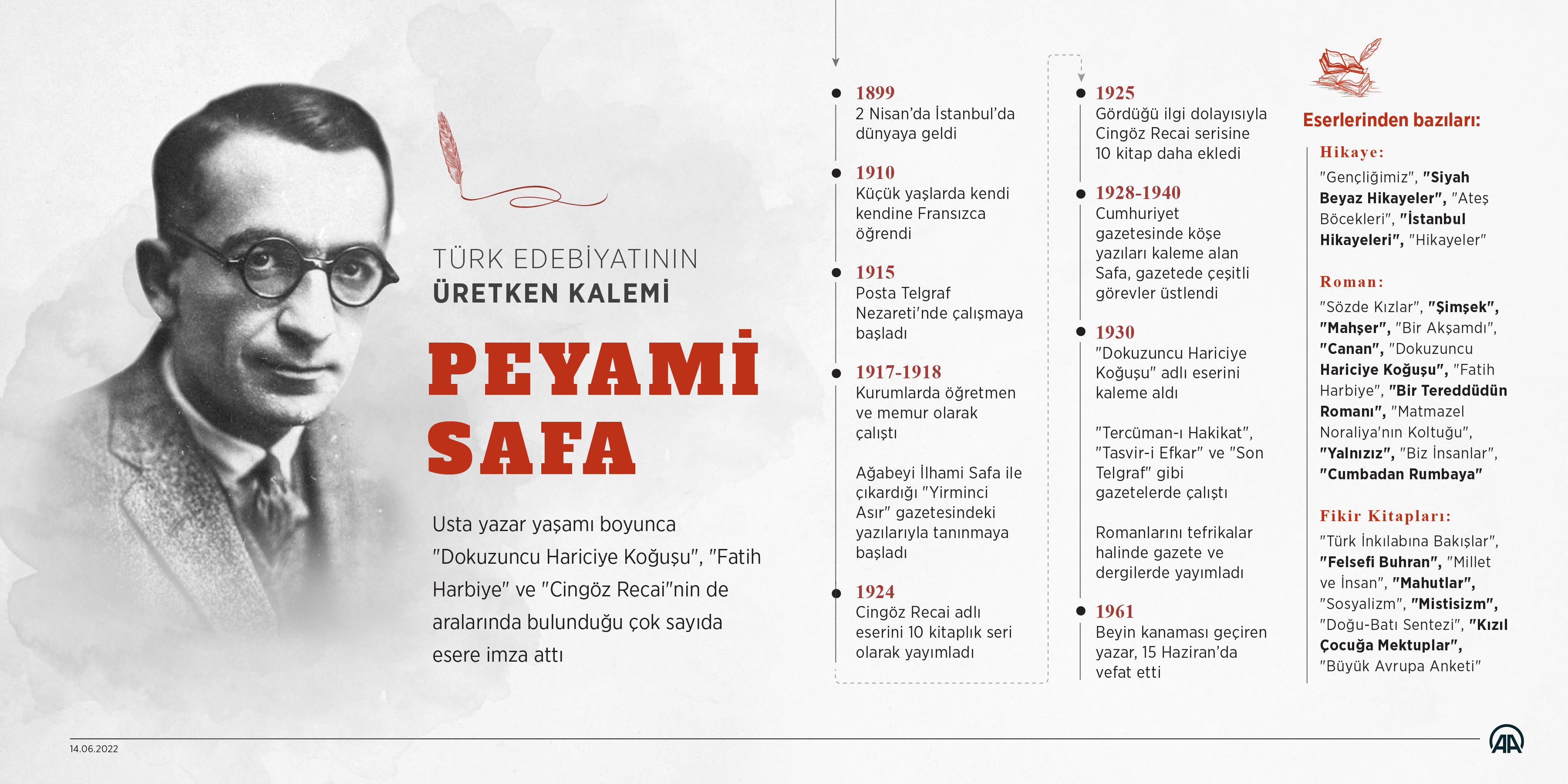 Usta yazar yaşamı boyunca "Dokuzuncu Hariciye Koğuşu", "Fatih Harbiye" ve "Cingöz Recai"nin de aralarında bulunduğu çok sayıda esere imza attı.