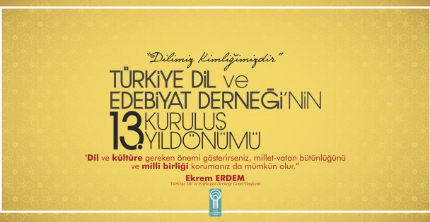 Türkiye Dil ve Edebiyat Derneği Genel Başkanı Ekrem Erdem, derneğin kuruluşunun 13. Yılı dolayısıyla 2021’in Cumhurbaşkanlığı tarafından “Yunus Emre ve Türkçe Yılı” ilan edilmesiyle milletçe Türkçeye daha çok yaklaştığımızı ifade ederek şunları söyledi: