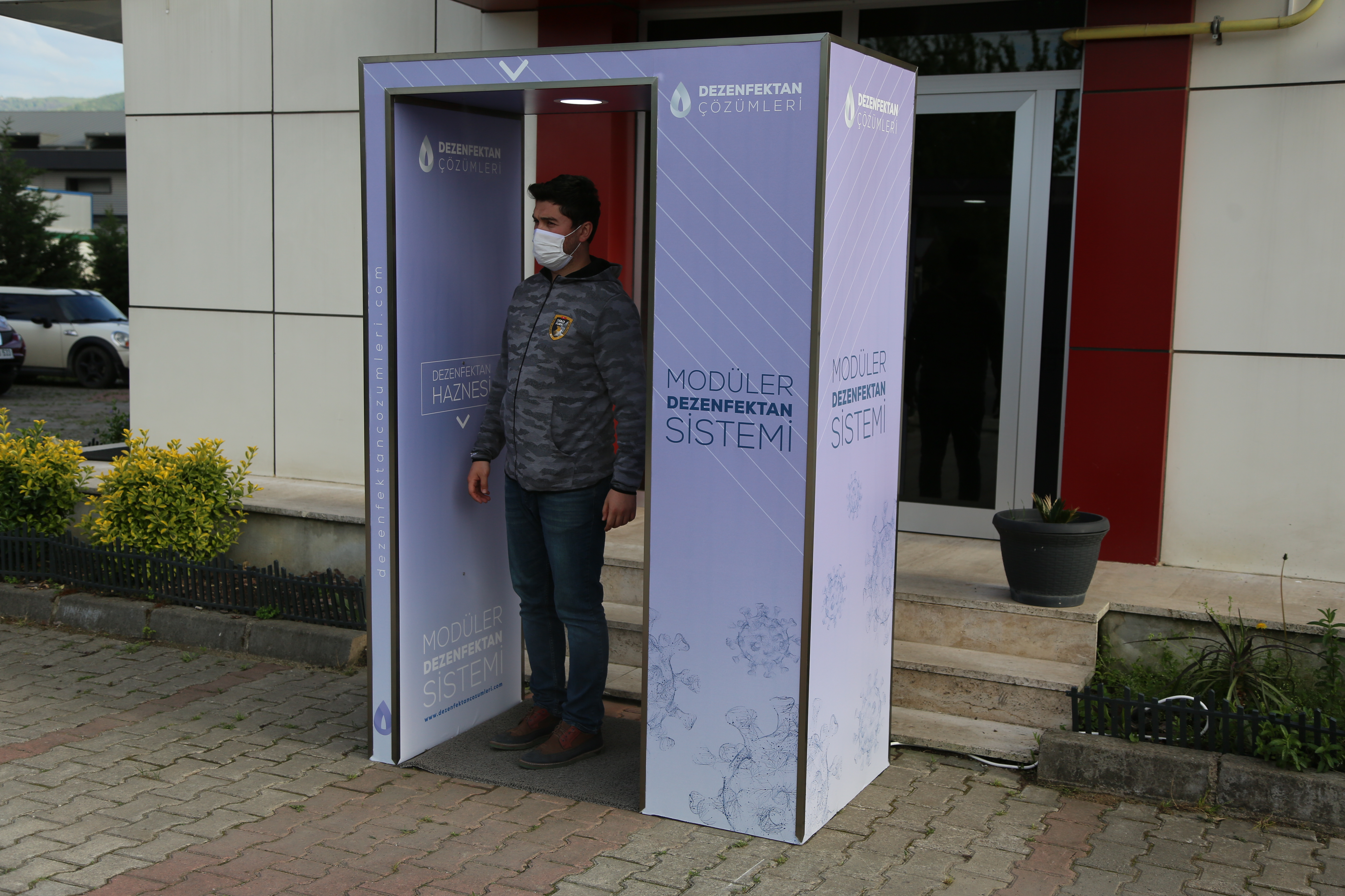 Firma, yaklaşık 1,5 aylık sürecin ardından marketler için alışveriş poşeti dezenfektan ünitesi, iş yerleri ve kamu kuruluşlarında kullanıma yönelik olarak da modüler dezenfektan ünitesi ve tüneli geliştirdi.
