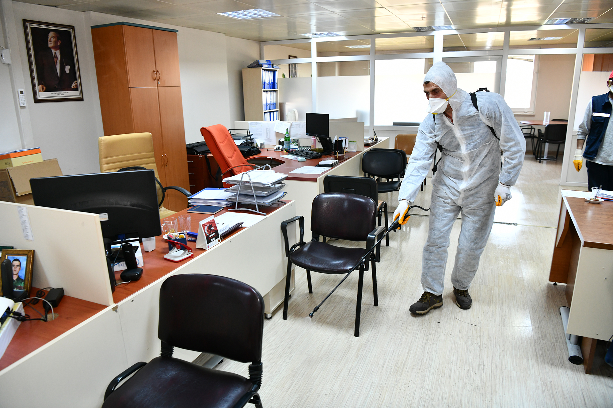 Virüs kaynaklı salgın hastalıkların yayılmasını önlemek amacıyla ilçede birçok noktada çalışmalarını tamamlayan Çayırova Belediyesi, halka açık alanların başında gelen kamu kurumlarında dezenfekte uygulamasına devam ediyor.
