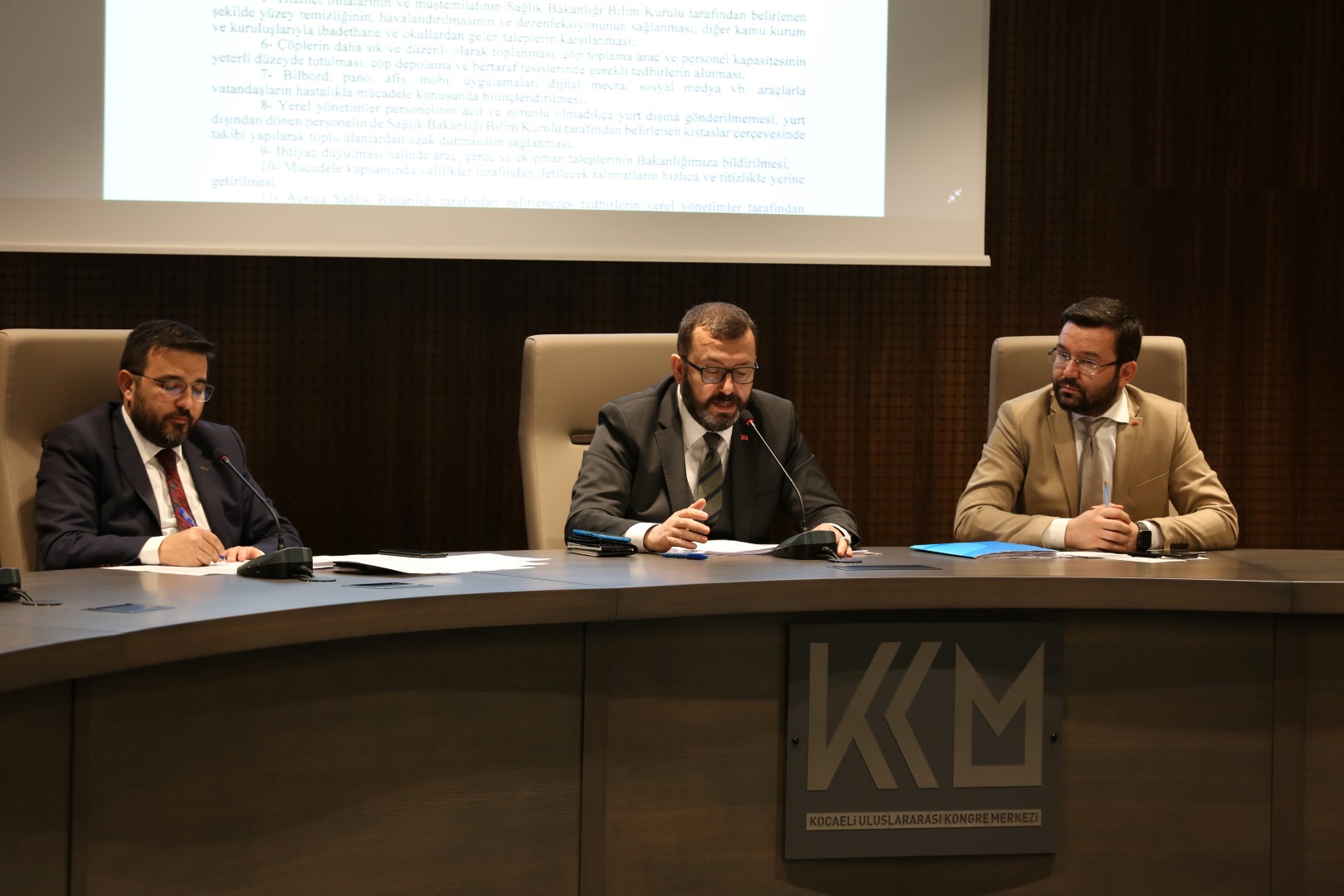 Toplantı öncesi kısa bir açıklama yapan Kocaeli Büyükşehir Belediyesi Genel Sekreter Yardımcısı Dr. Hasan Aydınlık; "Bu virüs ile sistemli bir şekilde mücadele ederek başarılı oluruz. Bunun için ilçe belediyeleriyle işbirliği önemli. Bugün kriz masası oluşturduk. 12 ilçe belediyemizden katılımla ortak kararlar alarak mücadelemizi sürdüreceğiz. Mücadelede kullanılacak ekipman ve o ekipmanı kullanan kişilerin kendini koruyacak bilgi ve donanıma sahip olması ve mücadele süresince diğer sağlık malzemeleri seçilirken Sağlık Bakanlığı'nın onaylı ürünleri seçmemiz gerektiğini unutmamamız gerekiyor. Bu süreçte karaborsa ve stokçulara fırsat vermeyeceğiz. Bunun için yapılan her çalışmayı belli planlar içerisinde yapacağız" dedi.