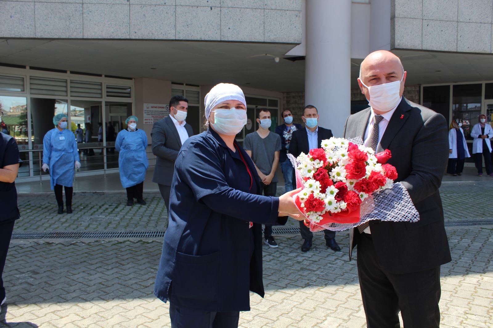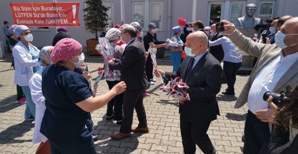 "Normalleşme sürecine yavaş yavaş geçiyoruz. Darıca olarak iyi bir duruma geldik ve bunda hepinizin katkısı var." diyen Karaman, hemşireleri hastanede ziyaret etmenin, yanlarında olmanın sevindirici olduğunu kaydetti.