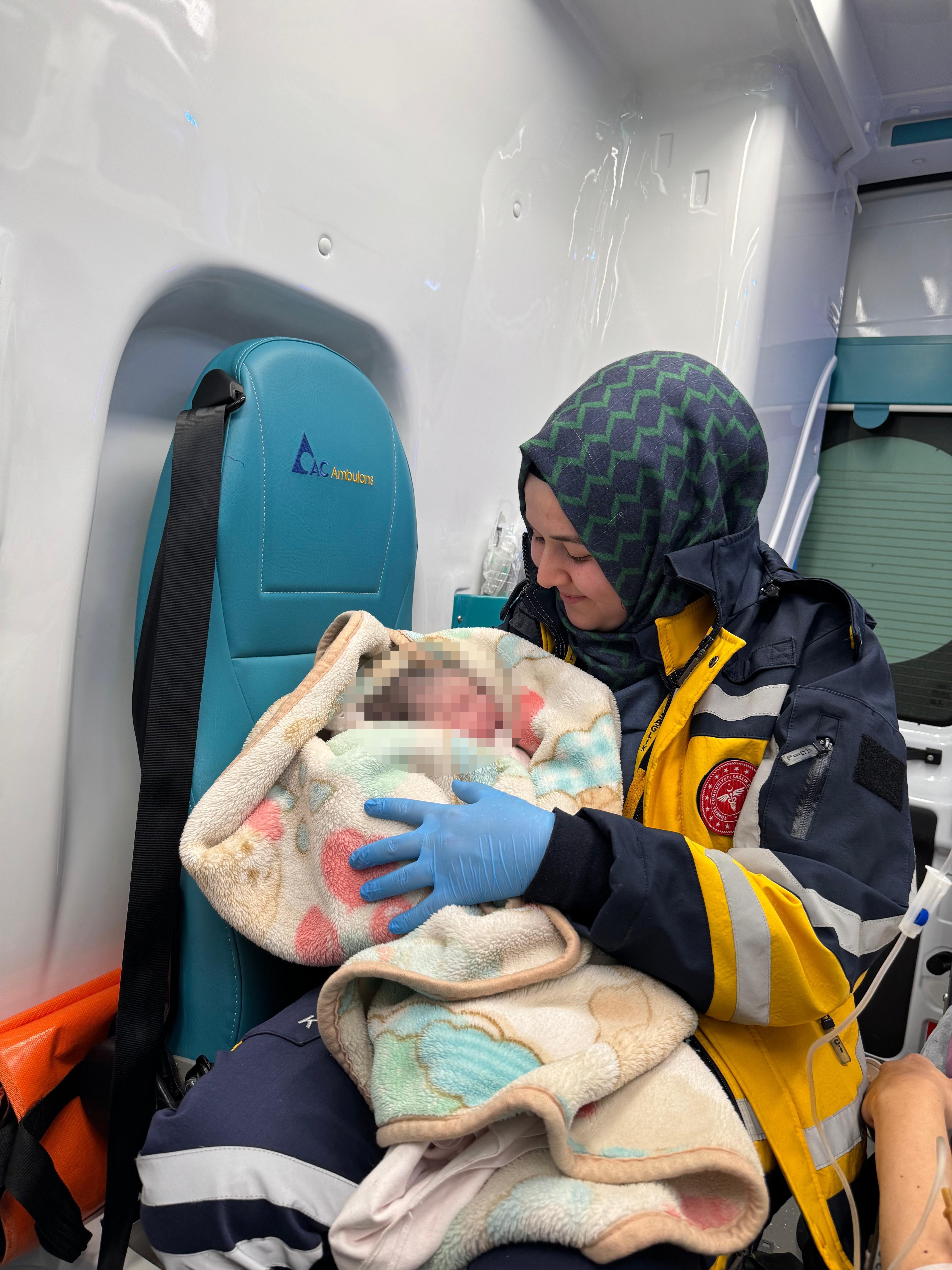 Doğumu gerçekleştiren paramedik Kübra Özcan, olayın kendileri için de unutulmaz bir hatıra olduğunu belirterek, "24 yaş, başlamış doğum vakası ihbarı üzerine çıkış yaptık. Hastaya ulaştığımızda direkt ambulansa aldık. Muayenesinde 'taçlanma evresi' dediğimiz doğumun başlangıcının gerçekleştiğini gördük. Sonrasında hastaya doğumun başladığını ve sakin olması gerektiğini anlattık. Ona yardımcı olacağımızı söyledik. O da bizi dinledi ve güvendi. Nefes egzersizleri ve doğum manevralarıyla bebeğimizin doğumunu gerçekleştirdik. Bir kız çocuğuydu kendisi. Ardından sağlıklı bir şekilde annesini ve kız çocuğunu hastaneye teslim ettik. Daha öncesinde böyle bir olayla karşılaşmamıştık. Kırsal bölgede olduğumuz için hastanın aciliyeti vardı. Hızlı müdahale etmemiz gerekiyordu ve gerekeni yaptık. Biz de çok mutluyuz" dedi.