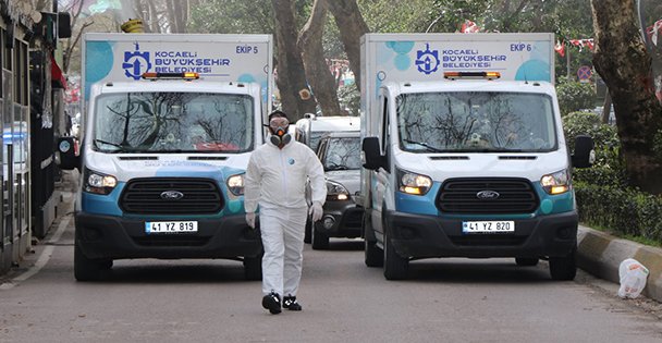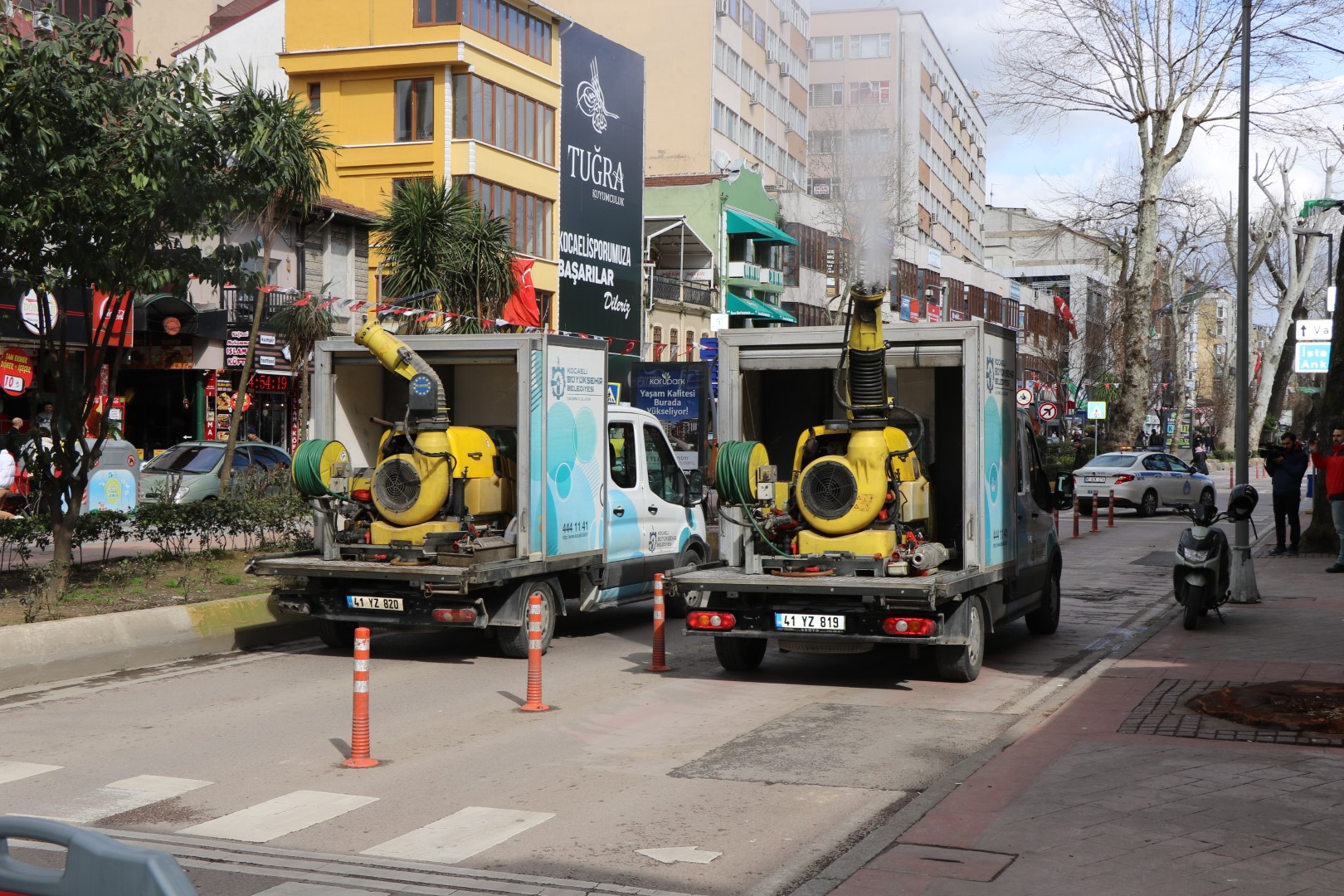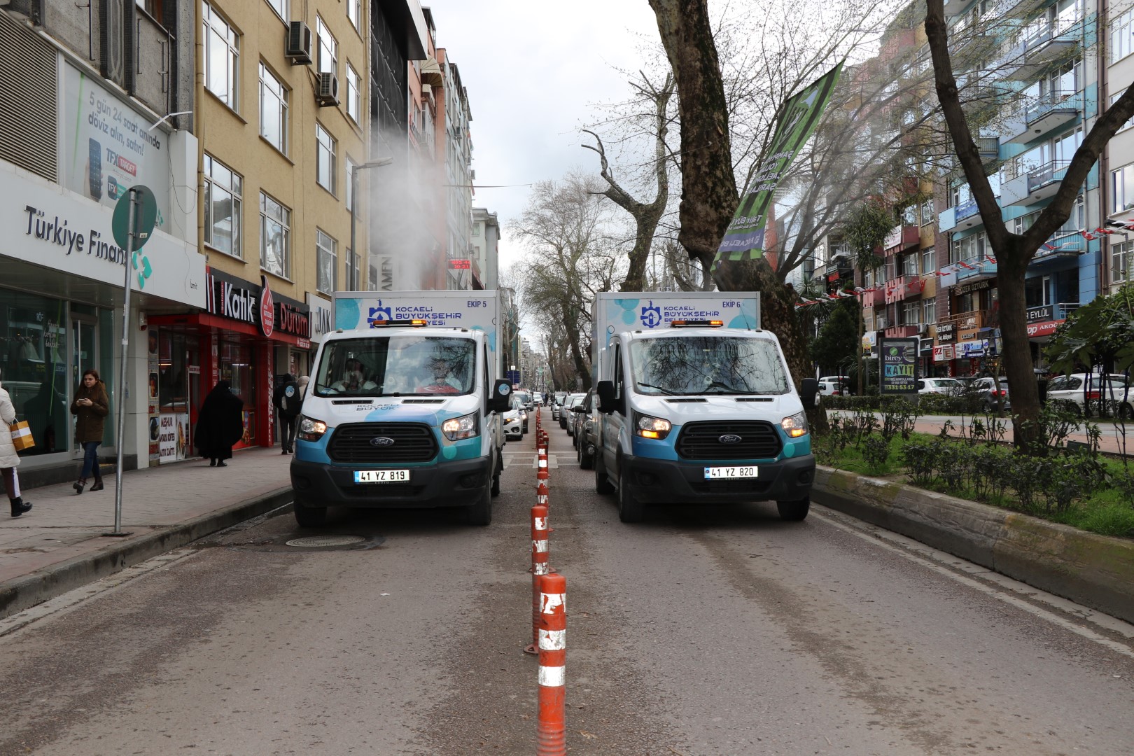 Büyükşehir Belediyesi ekipleri iki temizlik aracıyla, İzmit ilçesi yürüyüş yolunda dezenfekte işlemi yaptı.