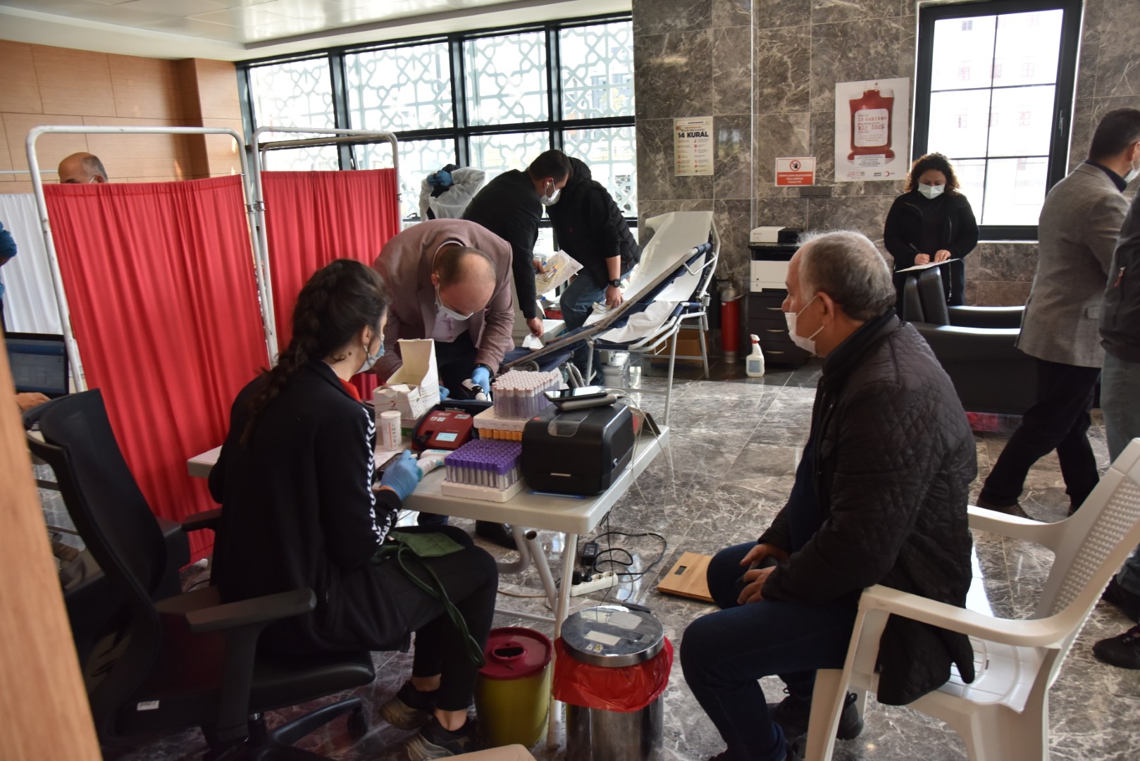 Kartepe Belediyesi Hizmet Binası’nda 5’nci defa düzenlenen kan bağışına belediye başkan yardımcıları, birim müdürleri, muhtarlar, belediye personelinin yanı sıra vatandaşlarda katıldı. Gereken formları dolduran kan bağışçıları herkesi kan vermeye davet ettiler.