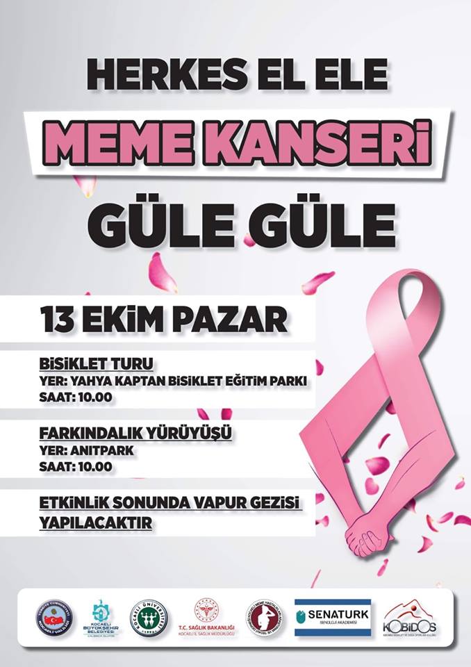 13 Ekim Pazar günü sat 10.00’da Anıtpark’tan yapılacak yürüyüş ve Yahya Kaptan Kültür Merkezi’nin önünden bisikletle başlayacak. Etkinlik, teknelerle yapılacak gezi, gösteri ve meme kanseri farkındalık sunumunun ardından sona erecek. Meme Kanseri Farkındalık etkinliğine tüm halkın katılması bekleniyor.