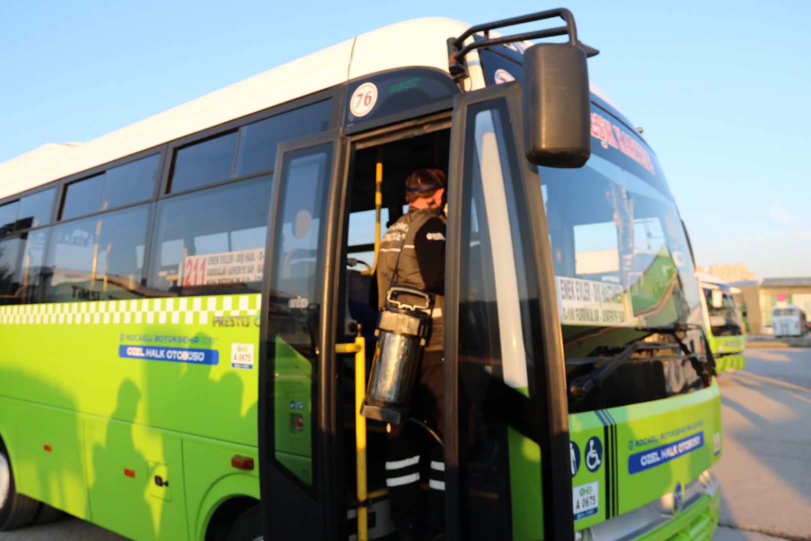Kocaeli Büyükşehir Belediyesi, virüs ve mikroplara karşı vatandaşların hijyen seviyesi yüksek araçlarda seyahat edilmesi için her türlü önlemi alıyor. Yapılan detaylı temizliklerde günlük yüzlerce yolcu taşıyan otobüslerin içi, dışı, camlar, sürücü kabini, tutamaklar, yolcu koltuk tutamakları, yerler, tavan, dış tavan ve dip köşe temizliği olmak üzere her nokta temizleniyor.