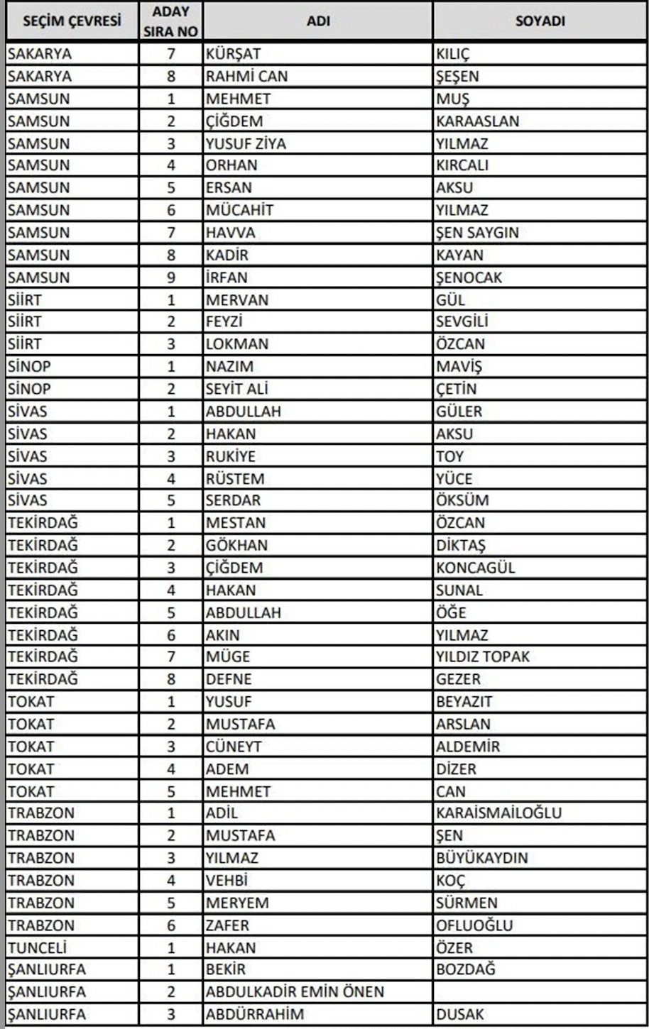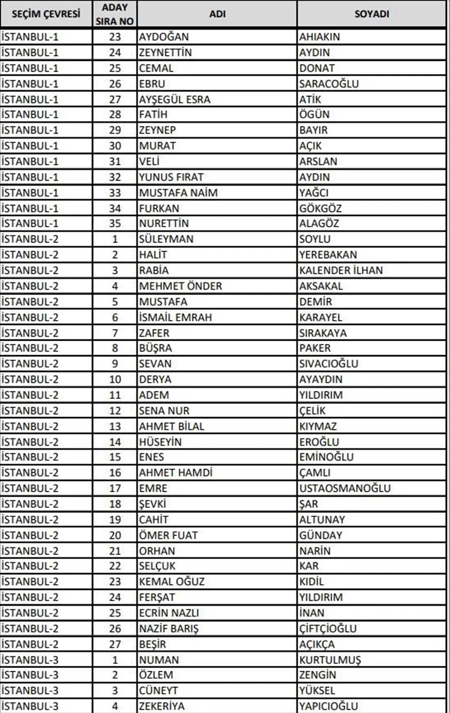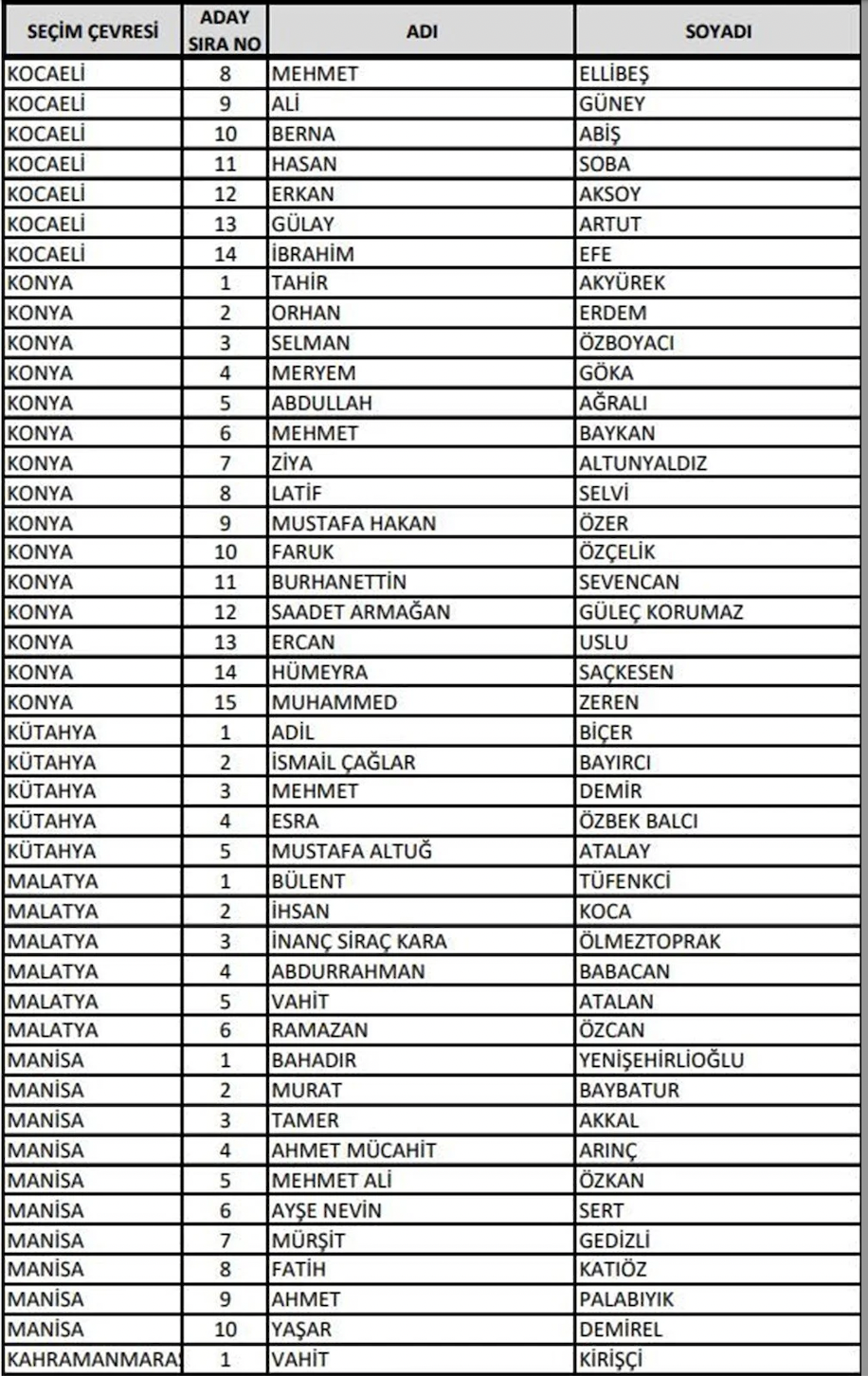 Adalet ve Kalkınma Partisi (AK Parti) 14 Mayıs'ta yapılacak olan 28. Dönem Milletvekili Genel Seçimi'ne katılacak milletvekili adaylarının listesini Yüksek Seçim Kurulu'na (YSK) teslim etti. 27. Dönem'de görev alan milletvekillerinin yüzde 70'i değişti. En genç milletvekili adayı ise 19 yaşında bir üniversite öğrencisi oldu. Cumhurbaşkanı Yardımcısı Fuat Oktay ve kabinedeki bakanlar listede üst sıralarda yer aldı. Kültür ve Turizm Bakanı Mehmet Nuri Ersoy ile Sağlık Bakanı Fahrettin Koca ise listede yok.