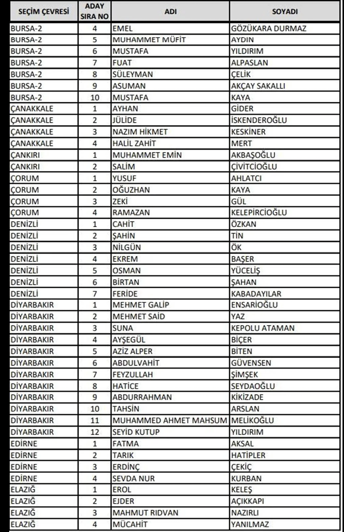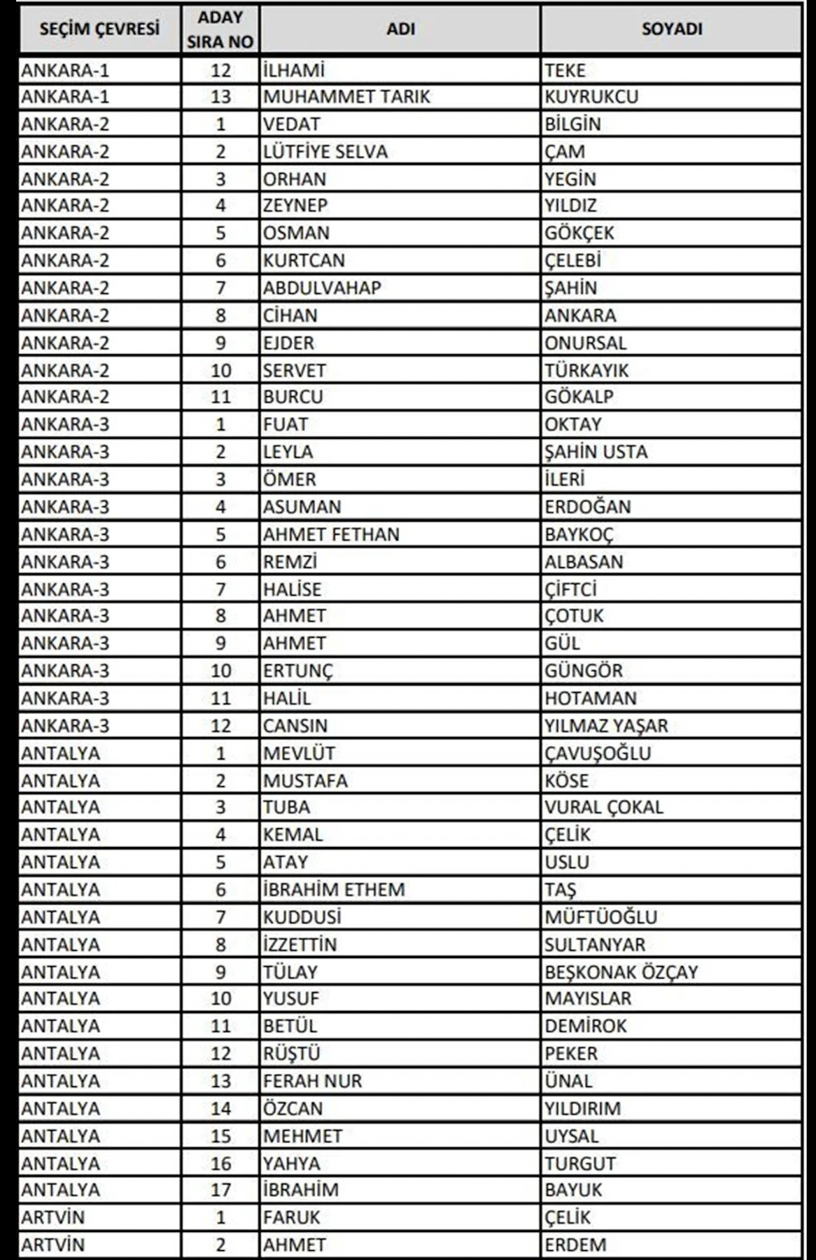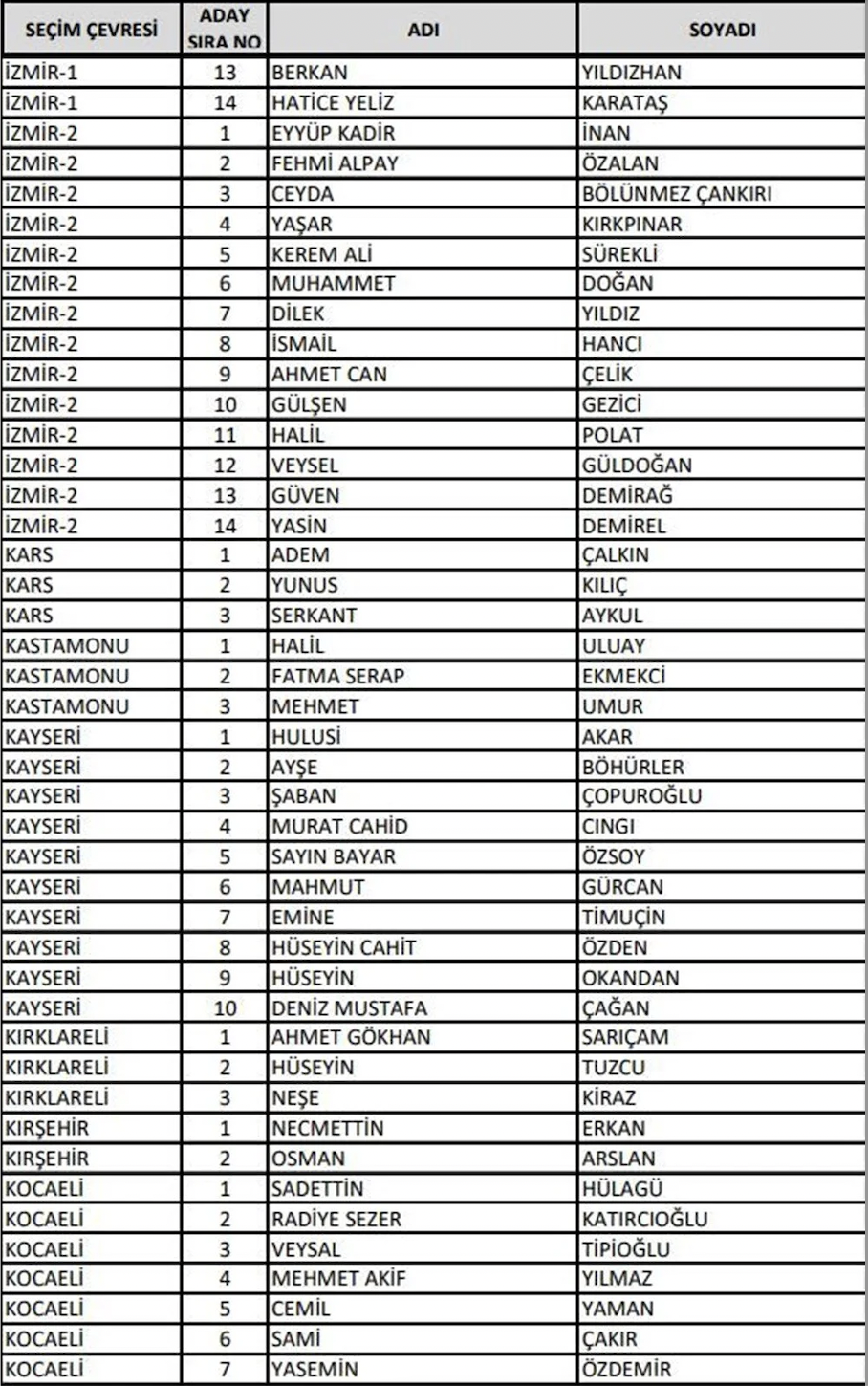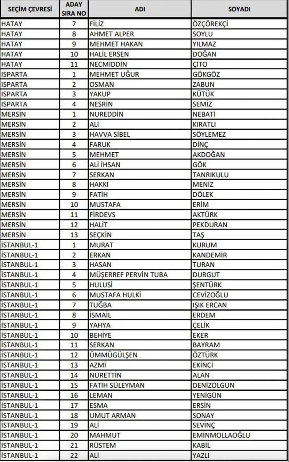 Adalet ve Kalkınma Partisi (AK Parti) 14 Mayıs'ta yapılacak olan 28. Dönem Milletvekili Genel Seçimi'ne katılacak milletvekili adaylarının listesini Yüksek Seçim Kurulu'na (YSK) teslim etti. 27. Dönem'de görev alan milletvekillerinin yüzde 70'i değişti. En genç milletvekili adayı ise 19 yaşında bir üniversite öğrencisi oldu. Cumhurbaşkanı Yardımcısı Fuat Oktay ve kabinedeki bakanlar listede üst sıralarda yer aldı. Kültür ve Turizm Bakanı Mehmet Nuri Ersoy ile Sağlık Bakanı Fahrettin Koca ise listede yok.