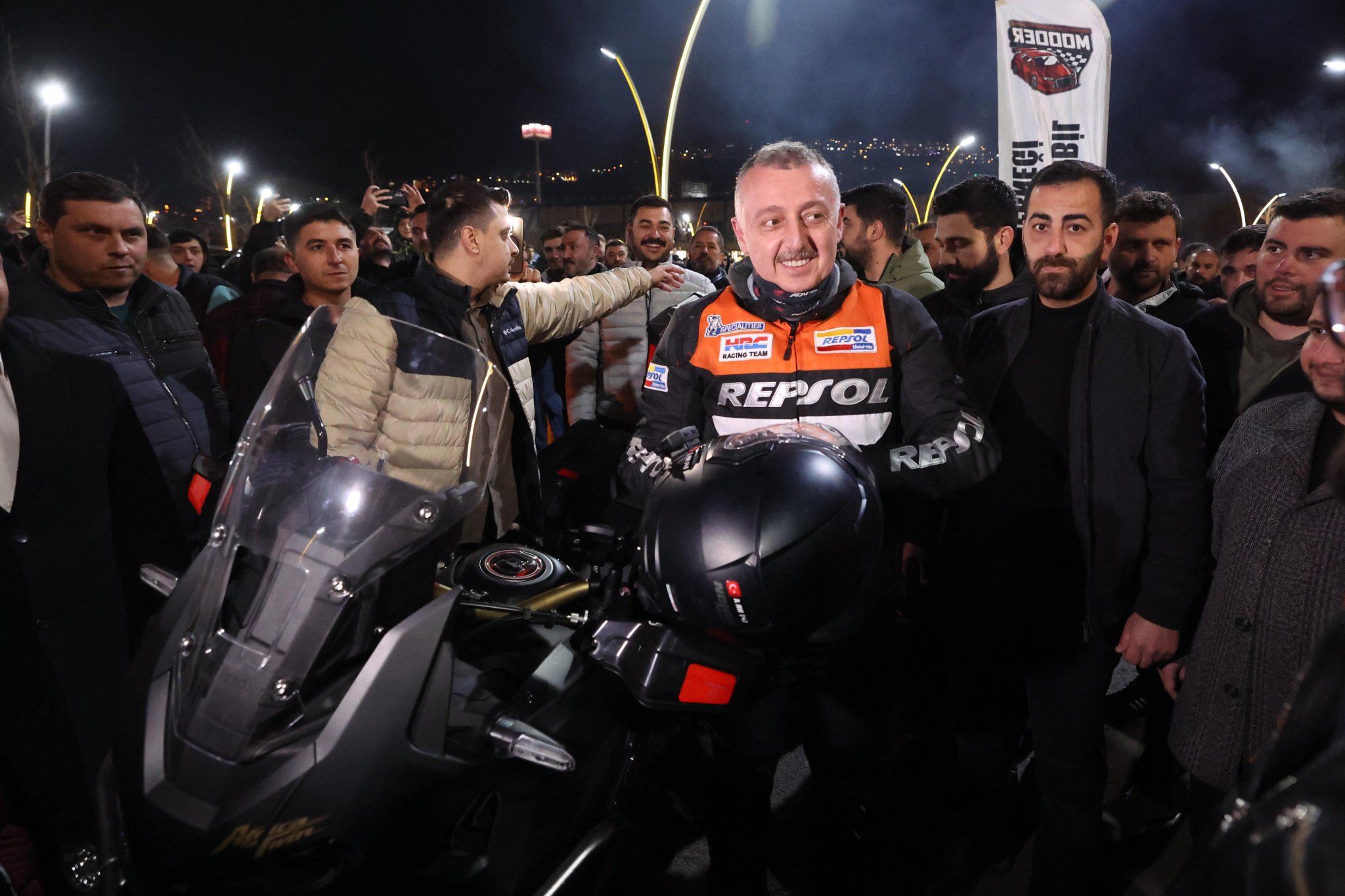 Kocaeli Büyükşehir Belediye Başkanı Doç.Dr.Tahir Büyükakın, dün akşam İzmit’te bir araya gelen modifiye araç tutkunu gençlerin davetlisiydi. AK Parti Kocaeli İl Gençlik Kolları Başkanı Çağatay Çağlayan ile birlikte Kongre Merkezi önündeki otoparkta toplanan gençlerle bir araya gelen Başkan Büyükakın’ın motosiklet merakı olduğu ortaya çıktı. Alana motosiklet montu giyerek gelen, burada motosiklete de binen Başkan Büyükakın’ı gören gençler büyük şaşkınlık yaşadı.