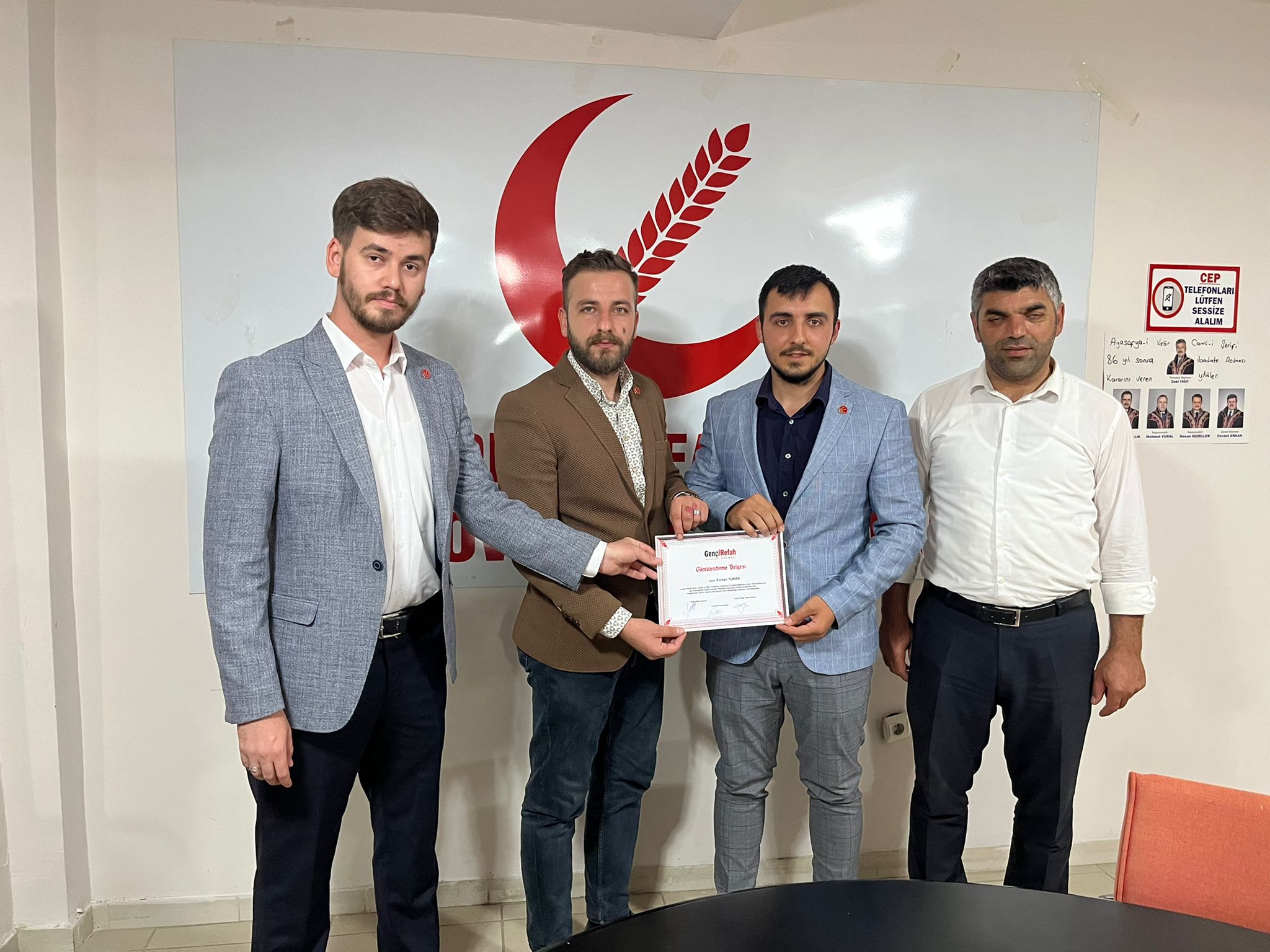 Yeniden Refah Partisi Kocaeli İl Gençlik Kolları başkanı Mücahit Akar, görevlendirme yazısını Furkan Turan'a teslim ederek yeni görevinde başarılar dilerken, Murat Aydın’a bugüne kadar yaptığı hizmetlerden dolayı teşekkür etti.