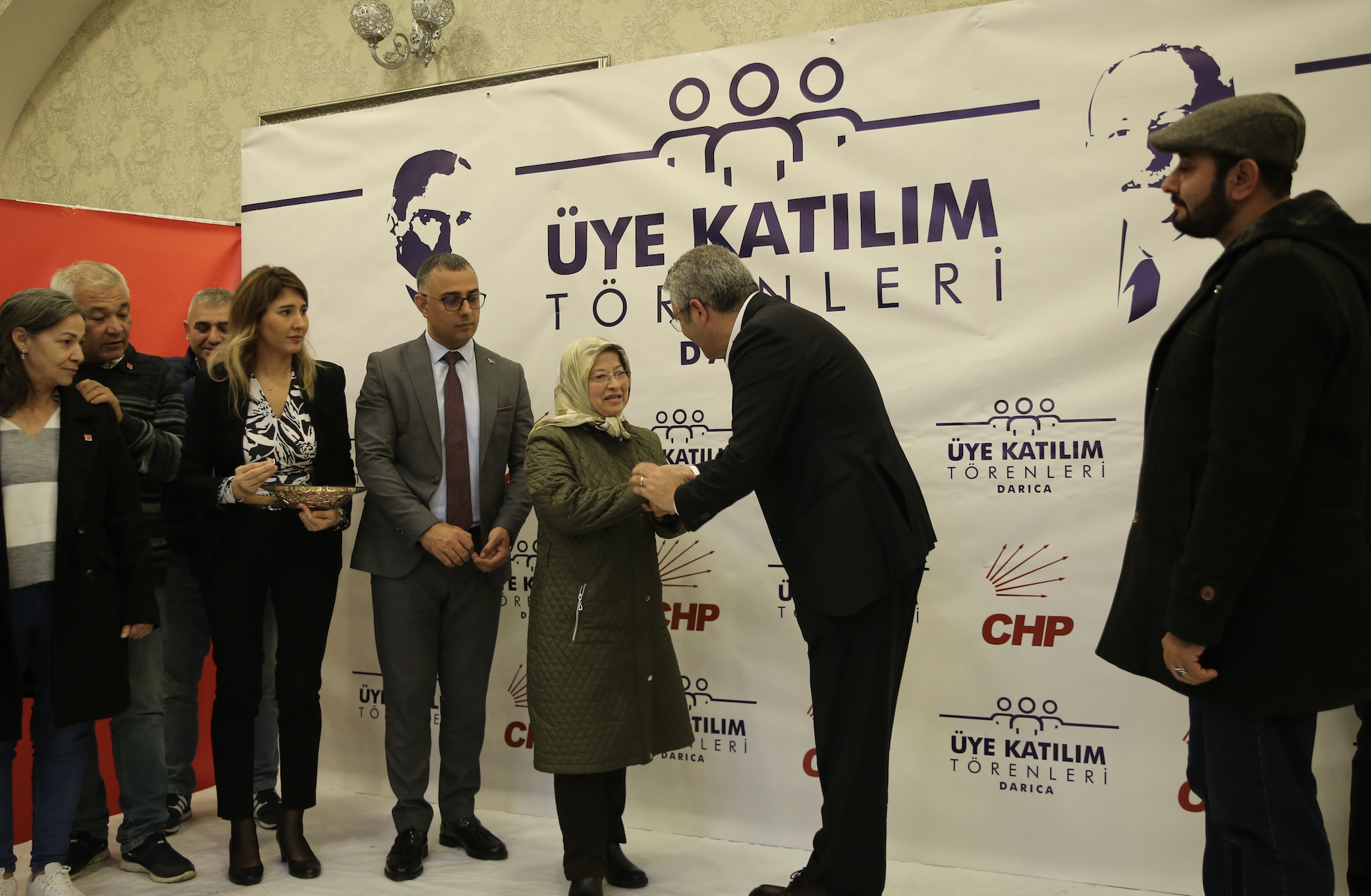 Salıcı, konuşmaların ardından yeni üyelere rozetlerini taktı.