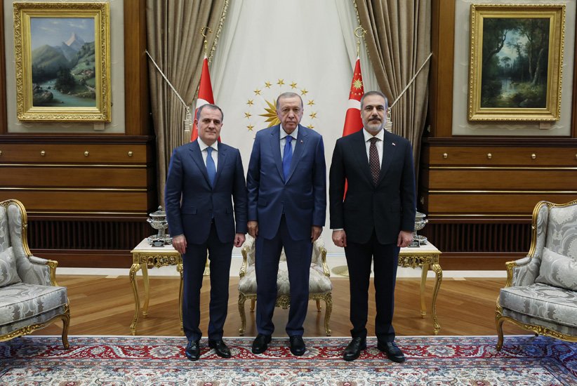 Cumhurbaşkanı Recep Tayyip Erdoğan, Azerbaycan Dışişleri Bakanı Ceyhun Bayramov’u Cumhurbaşkanlığı Külliyesinde kabul etti. Kabulde, Dışişleri Bakanı Hakan Fidan da hazır bulundu.