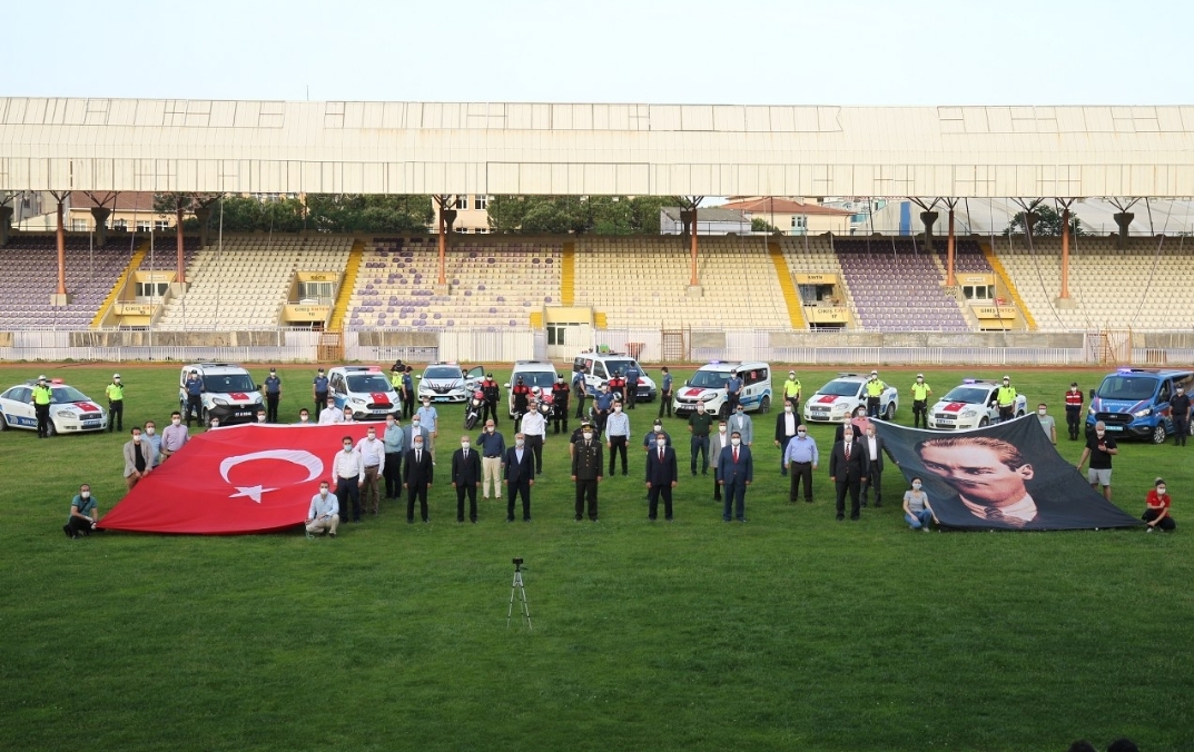 Çelenk sunma töreninin ardından Gebze Stadyumunda saat 19:19’u gösterdiğinde ilçe protokolü statta, Gebzeliler ise evlerinin balkonunda İstiklal Marşı’nı hep birlikte söyledi. İstiklal Marşı ve saygı duruşunun ardından İlçe Kaymakamı Mustafa Güler, Belediye Başkanı Zinnur Büyükgöz, KBB Başkan Vekili Yaşar Çakmak, GTÜ Rektörü Muhammed Hasan Arslan, Garnizon Komutanı Yarbay Ramazan Uydaş, siyasi partilerin temsilcileri ve ilçe protokolü stadyumdan başlattıkları yürüyüşte Gebzelileri selamladı.
