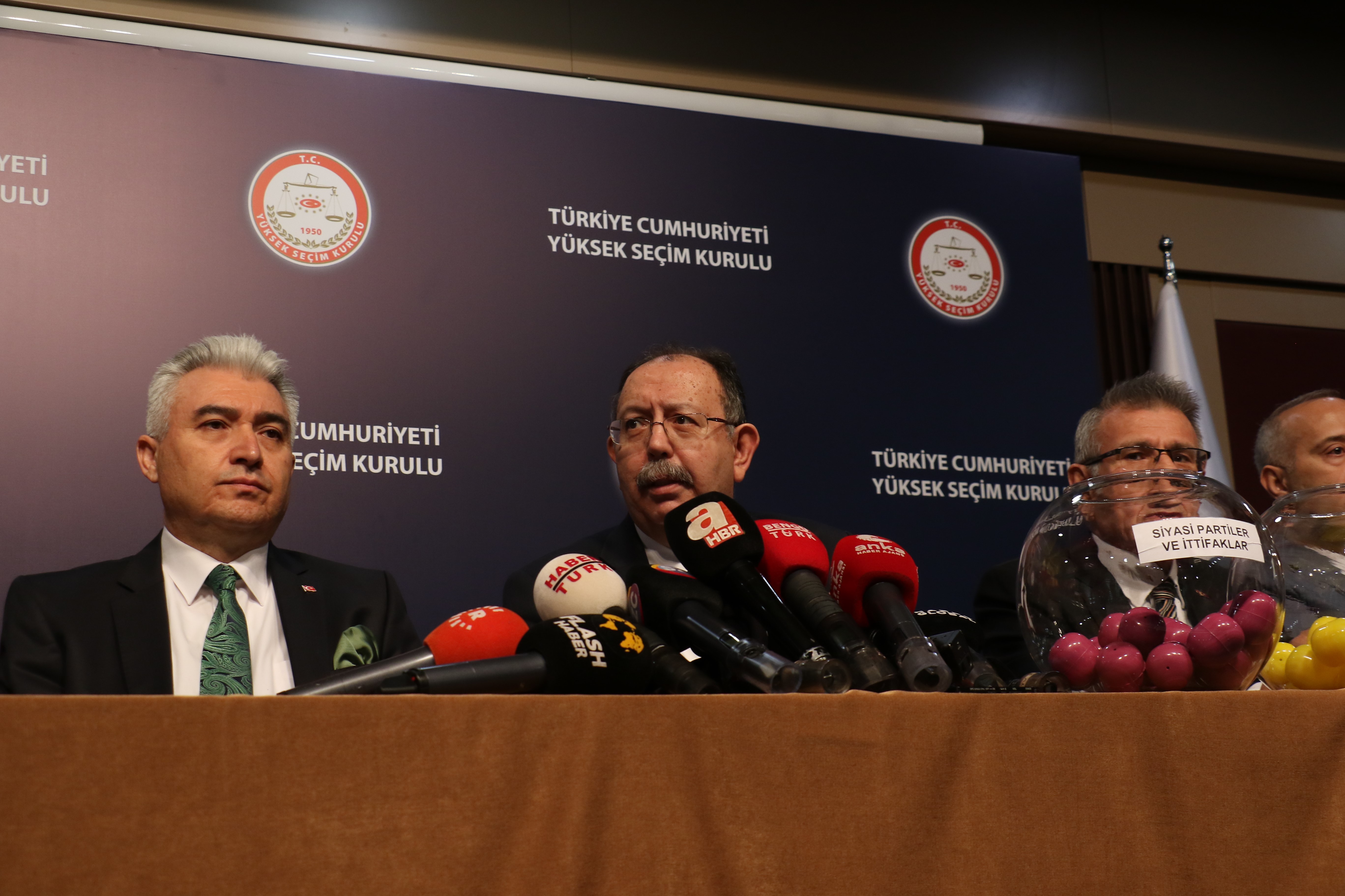 Ayrıca YSK Başkanı Ahmet Yener ise törende yaptığı konuşmada Emek Partisi ve HÜDA PAR'ın seçimlere katılmayacağını bildirdiğini hatırlatarak, "Demokratik Sol Parti (DSP) ve Halkların Demokratik Partisi (HDP) de kura çekimine katılmayacaklarını ve birleşik oy pusulasında yer almayacaklarını belirtmişlerdir" dedi.