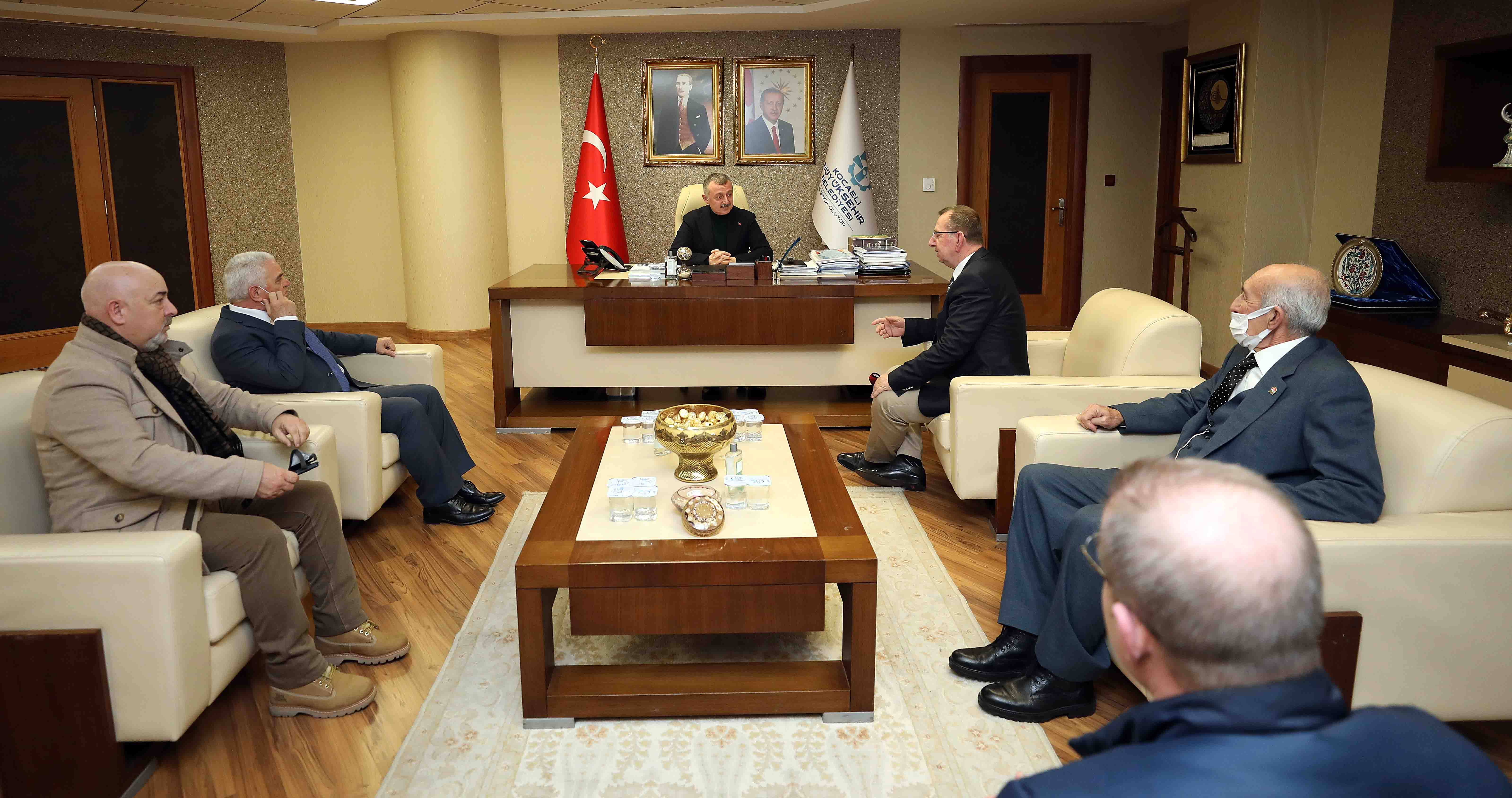 Marmara Belediyeler Birliği ve Kocaeli Büyükşehir Belediye Başkanı Doç. Dr. Tahir Büyükakın, Türkiye Futbol Antrenörleri Derneği (TÜFAD) Kocaeli Şube Başkanı Remzi Demirer ve yönetimini makamında konuk etti. Futbol başta olmak üzere amatör spor üzerine görüş alışverişinin yapıldığı birliktelikte, Kocaeli’ndeki futbolun gelişimi üzerine değerlendirmelerde de bulunuldu. TÜFAD Başkanı Demirer, “Tahir Başkanım, Spor Şurasında yaptığınız konuşmadaki hayalleriniz ve hedefleriniz bizler için çok önemlidir. Hayalleriniz ve hedefleriniz noktasında bizlere düşen her türlü görevi yerine getirmeye hazırız. Bu kentin çocuklarına hizmet etmek için çalışıyorsunuz. Sizlere ve ekibinize teşekkür ediyorum” ifadelerini sarf etti. Başkan Büyükakın ise, “Spor Şurasını ortak aklın eseri olarak; Kocaeli’nin spor haritasını, rotasını tayin etmesi için gerçekleştirmiştik. Orada ifade edilen düşünceler ve öneriler bizlere yol gösterecek” dedi.