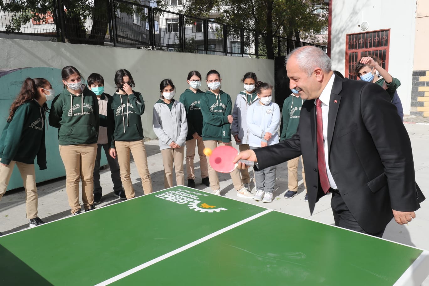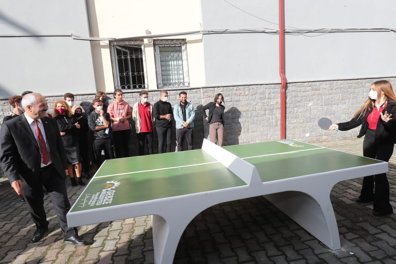 “Okula gelirken raketini al da gel” diyerek startını verdiği uygulama kapsamında masa tenisi ve ayak tenisi ekipmanları kazandırılan Yunus Emre Ortaokulu ve Gebze Anadolu Lisesi öğrencileriyle bir araya gelen Gebze Belediye Başkanı Zinnur Büyükgöz gençlerle masa tenisi oynadı
