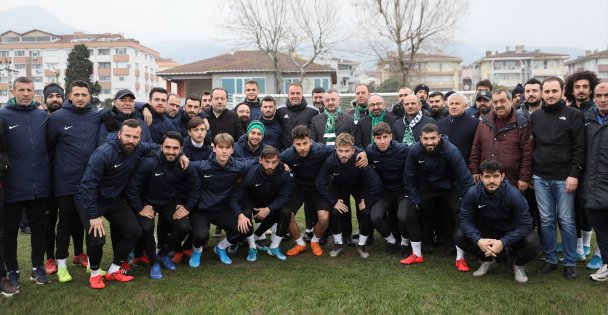 Marmara Belediyeler Birliği ve Kocaeli Büyükşehir Belediye Başkanı Doç. Dr. Tahir Büyükakın, Kocaelispor’un antrenmanını ziyaret ederek, teknik heyet ve futbolculara aldıkları başarılı sonuçlardan dolayı tebrik etti. Kocaelispor Yönetim Kurulu üyelerinin de hazır bulunduğu ziyarette Körfez Belediye Başkanı Şener Söğüt ve AK Parti İlçe Başkanı Ramazan Tuna da Başkan Büyükakın’a eşlik etti. Futbolculara tatlı ikram eden ve antrenman sahasında sohbet eden Başkan Büyükakın, “Kocaelispor ilk hedefine ulaşmasına sayılı haftalar kaldı” diyerek genel bir değerlendirme sorusu soran spor muhabirine cevaben, “İlk hedefe ulaşma konusunda zerre kadar zaten şüphemiz yoktu. Bu sene bu iş tamam. Bir üst lige çıkacağız. Bizim için bu yolun başlangıcıdır. Bizim hedefimiz bir üst lige çıkmak değil. Bizim hedefimiz Süper Lig’e çıkmaktır” dedi.