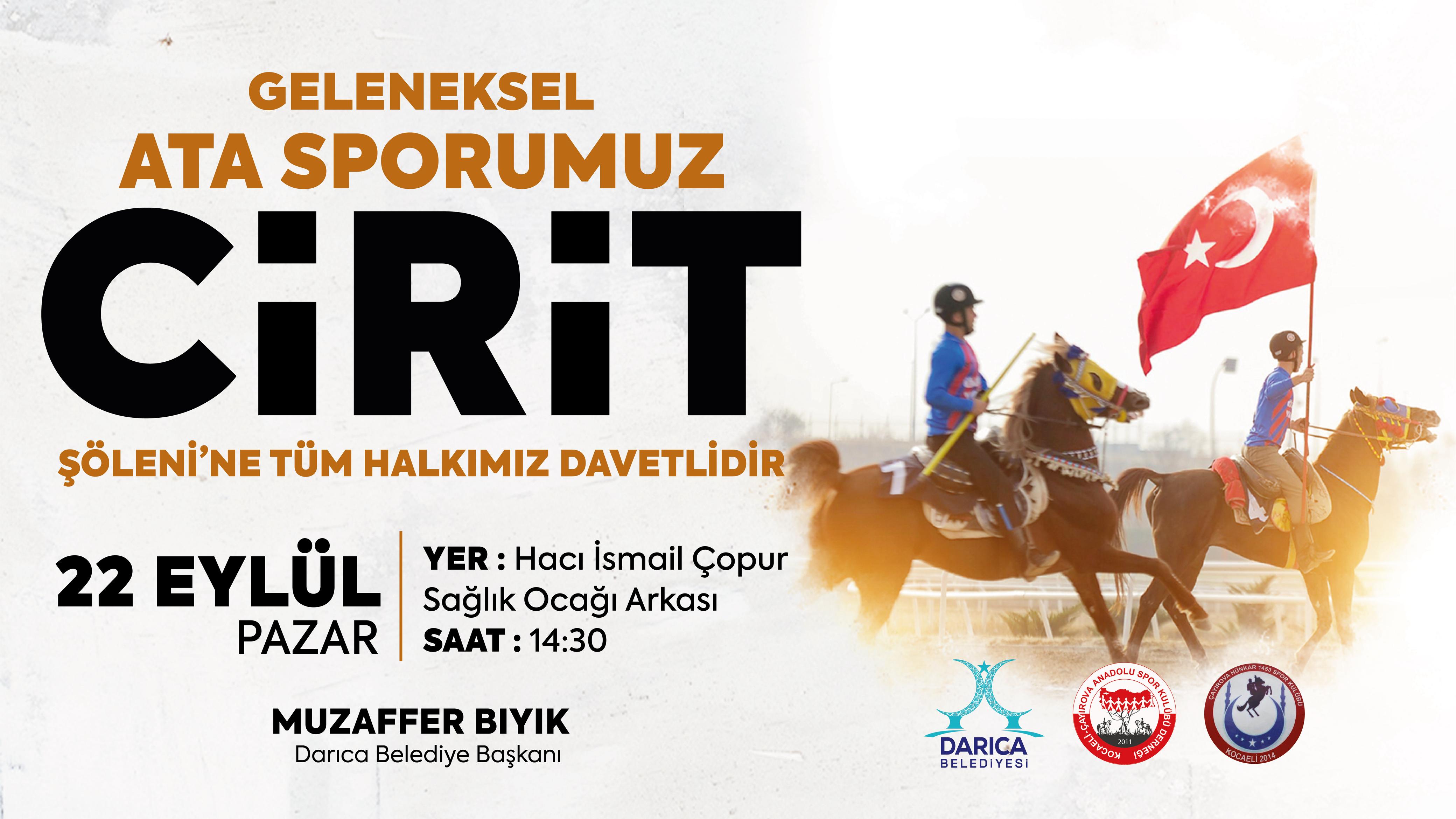 Ata sporumuz olan Cirit sporunu yaşatmayı amaçladıklarını ifade eden ve vatandaşları şölene davet eden Darıca Belediye Başkanı Muzaffer Bıyık, “Geleneksel ata sporumuz olan Cirit, yüzyıllar öncesinden günümüze kadar varlığını sürdürüyor. Bizler de kültürümüzü yeni nesillere aktarmak için ilçemizde Geleneksel Cirit Şöleni düzenliyoruz. Yeni nesillere geleneklerimizi ve kültürümüzü aktarmak için hepimize görevler düşüyor. Tüm Darıcalı vatandaşlarımızı bekliyoruz” diye konuştu.