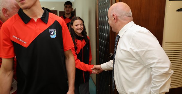 Darıca Belediyesi Eğitim ve Spor Kulübü’nün genç sporcuları; karate, boks ve kick boks branşlarında Türkiye'yi temsil ederek milli formayla birçok madalya kazandı. Darıca Belediye Başkanı Muzaffer Bıyık, Milli forma altında Darıca’yı temsil ederek madalya kazanan genç sporcuları makamında ağırladı. Darıca Belediyesi Eğitim ve Spor Kulübü Başkanı Hüsamettin Ergül ile birlikte antrenör ve Darıca’nın milli sporcularını kabul ederek kendilerini başarılarından dolayı tebrik eden Başkan Bıyık, "Bu yola çıkarken çocuklara güvendiğimizi söyledik. Darıca’mızın evlatları için imkanlarımızı seferber ettik. Çok şükür onlar da bizim desteğimizi hiçbir zaman boşa çıkarmadı. Gerek Darıca Belediyesi forması gerekse de milli forma altında ülkemizi en iyi şekilde temsil ettiler. Darıca’mızdan birçok olimpiyat, dünya ve Avrupa şampiyonları yetiştirmenin gururunu yaşıyoruz. İnanıyorum ki yatırımlarımızın meyvesini toplamaya devam edeceğiz” diye konuştu.