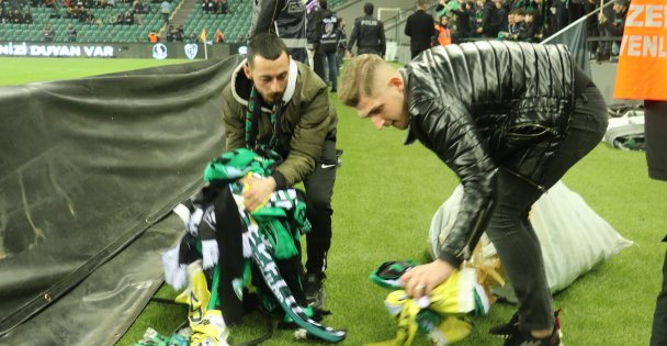 Kocaelispor, Sakaryaspor maçının 4 dakika 17. saniyesinde deprem bölgesindeki vatandaşlar unutulmadı. Sahaya atılan atkılar, deprem bölgesine gönderilmek için toplandı.